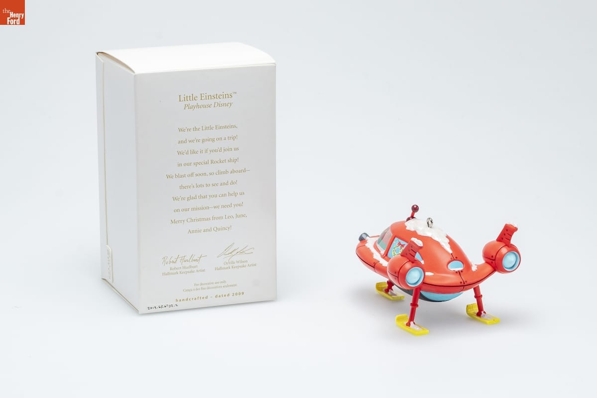 Little Einsteins [TM] / Playhouse Disney / We're the Little Einsteins, / and we're going on a trip! / We'd like it if you'd join us / in our special Rocket ship! / We blast off soon, so climb aboard-- / there's lots to see and do! / We're glad that you can help us / on our mission--we need you! / Merry Christmas fro Leo, June, / Annie and Quincy! / Robert Hurlburt / Hallmark Keepsake Artist / Orville Wilson / Hallmark Keepsake Artist / For decorative use only. / Concu a des fins decoratives seulement. / handcrafted - dated 2009