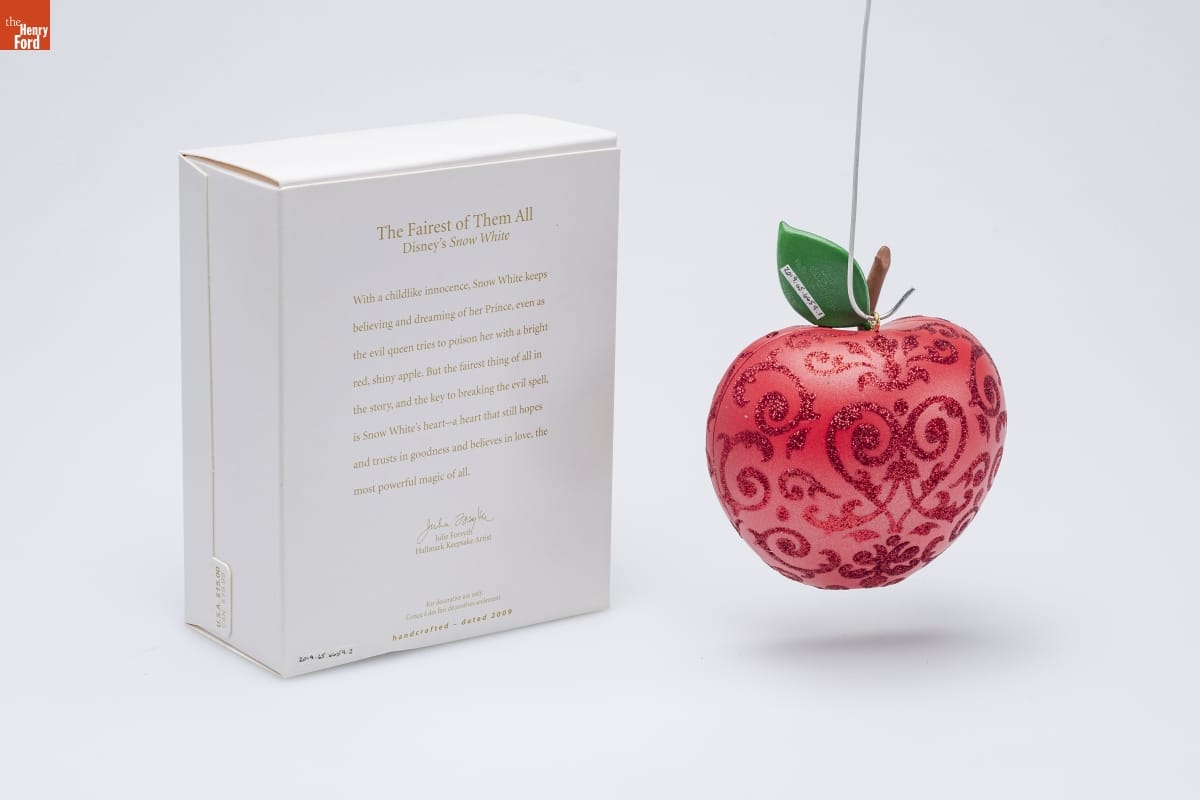 The Fairest of Them All / Disney's Snow White / With a childlike innocence, Snow White keeps / believing and dreaming of her Prince, even as / the evil queen tries to poison her with a bright / red, shiny apple. But the fairest thing of all in / the story, and the key to breaking the evil spell, / is Snow White's heart--a heart that still hopes / and trusts in goodness and believes in love, the / most powerful magic of all. / Julie Forsyth / Hallmark Keepsake Artist / For decorative use only. / Concu a des fins decoratives seulement. / handcrafted - dated 2009