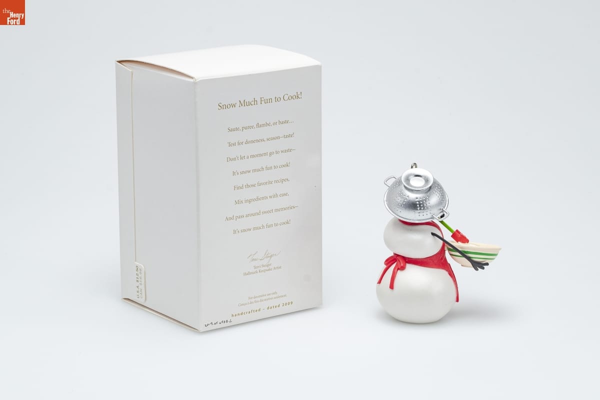 Snow Much Fun to Cook! / Saute, puree, flambe, or baste... / Test for doneness, season--taste! / Don't let a moment go to waste-- / It's snow much fun to cook! / Find those favorite recipes, / Mix ingredients with ease, / And pass around sweet memories-- / It's snow much fun to cook! / Terri Steiger / Hallmark Keepsake Artist / For decorative use only. / Concu a des fins decoratives seulement. / handcrafted - dated 2009