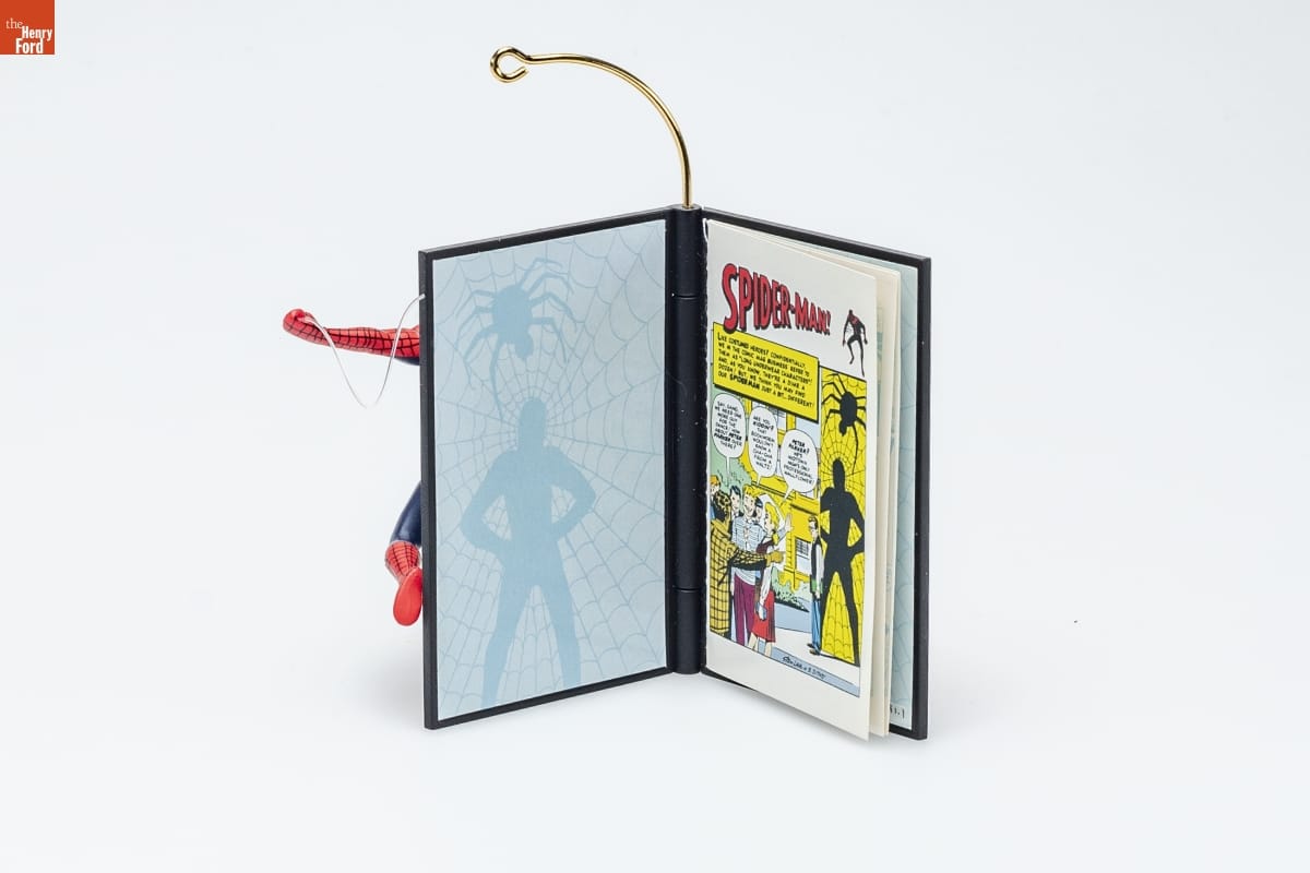Spider-Man [TM] / Comic Book Heroes / It was more than 45 years ago that Marvel Comics / fans first met a geeky teenager named Peter Parker, / who found himself with some pretty amazing / abilities after a bite from a radioactive spider. But only after the tragic death of his Uncle Ben did / Peter determine to harness his powers to fight / crime as no one else could, slinging and swinging / from building to building, delivering bad guys up / to the police left and right. It was that sense of / great responsibility that turned Peter Parker into / the amazing Spider-Man [TM]...and one of the / best-loved comic book heroes of all time. / Each of the ornaments in this series / features a different Comic Book Hero / literally bursting from the pages of a / miniature comic--with a story you can / actually read! / Robert Chad / Hallmark Keepsake Artist / Second in the Series. Look for 2 on this ornament. / For decorative use only. / Concu a des fins decoratives seulement. / handcrafted - dated 2009