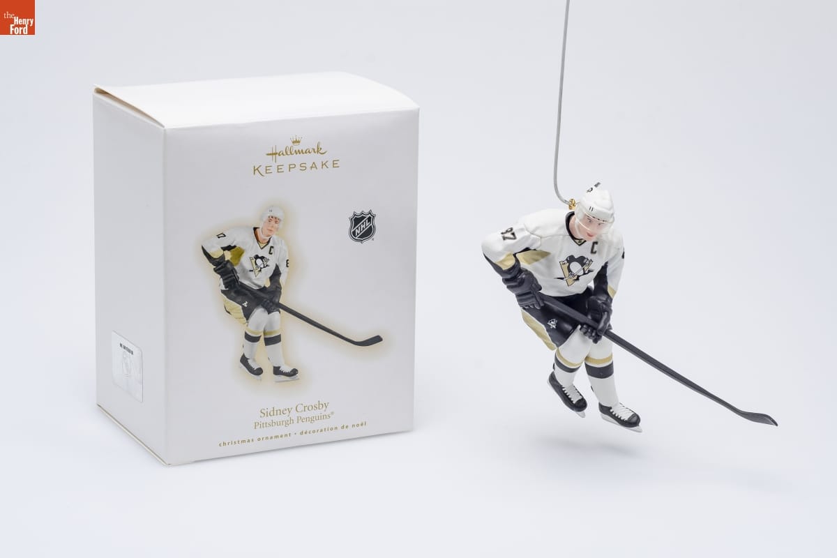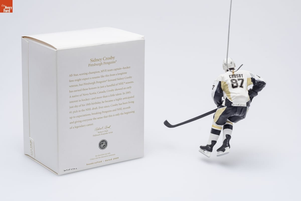 Sidney Crosby / Pittsburgh Penguins [R] / All-Star, scoring champion, MVP, team captain--hockey / fans might expect a resume like this from a longtime / veteran, but Pittsburgh's Penguins [R] forward Sidney Crosby / has earned these honors in just a handful of NHL [R] seasons. / A native of Nova Scotia, Canada, Crosby showed an early / interest in hockey--and more than a little talent. In 2005, / just shy of his 18th birthday, he became a highly anticipated / #1 pick in the NHL draft. Ever since, Crosby has been living / up to expectations, breaking Penguins and NHL records / and giving everyone the sense that this is only the beginning / of a legendary career. / Robert Chad / Hallmark Keepsake Artist / NHL / OFFICIAL LICENSED PRODUCT / For decorative use only. / Concu a des fins decoratives seulement. / handcrafted - dated 2009