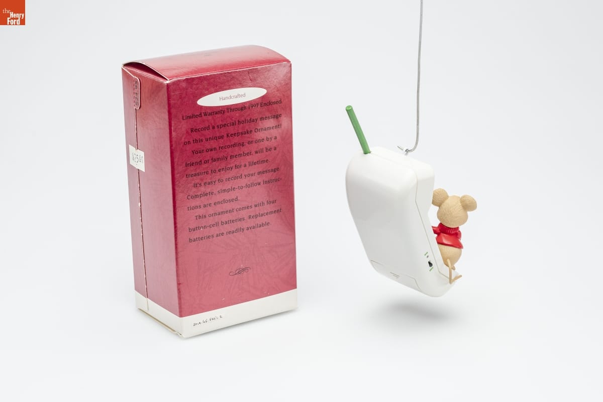 Early cordless telephones operated using short-range radio transmission between the base station and the handheld phone. In 1994, these phones went digital, allowing calls to be more secure and private. This Hallmark ornament lets you record a message for that special someone.