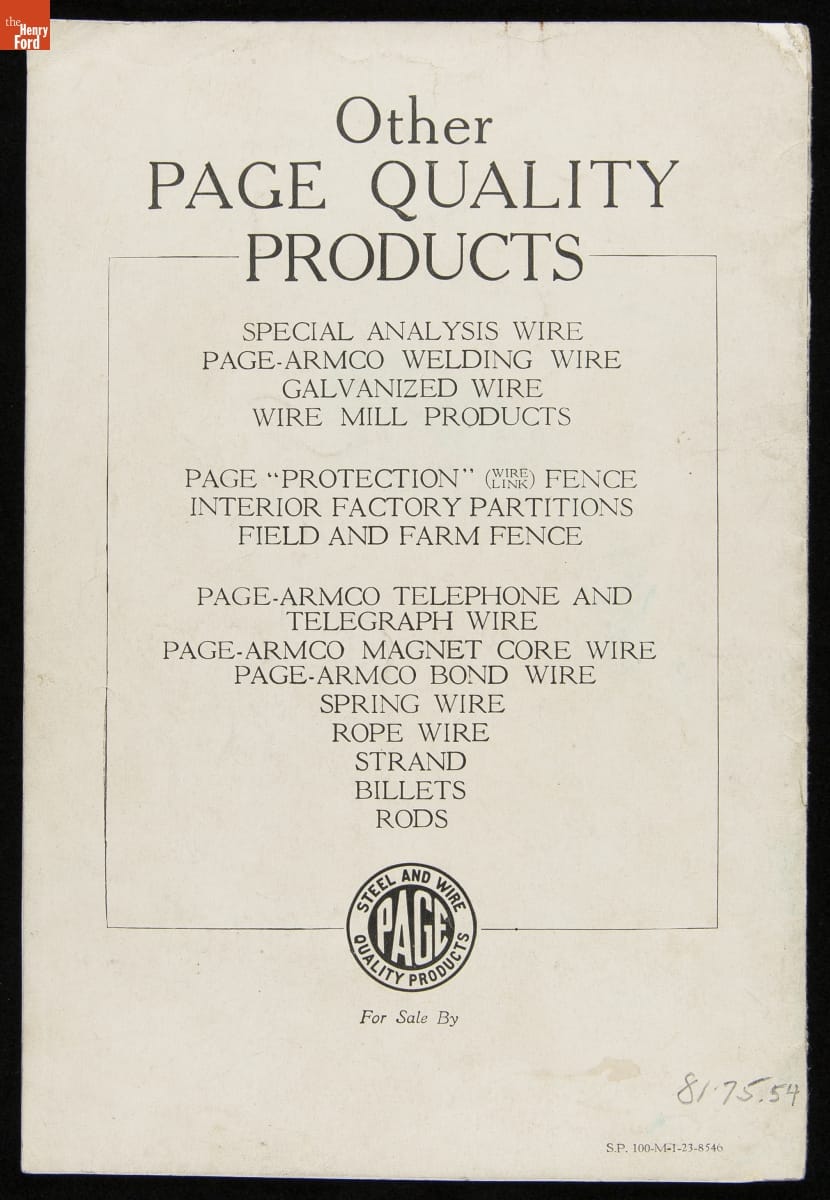 Page Steel and Wire Co. Trade Catalog, "Page Fence for Lawn and Garden," 1923