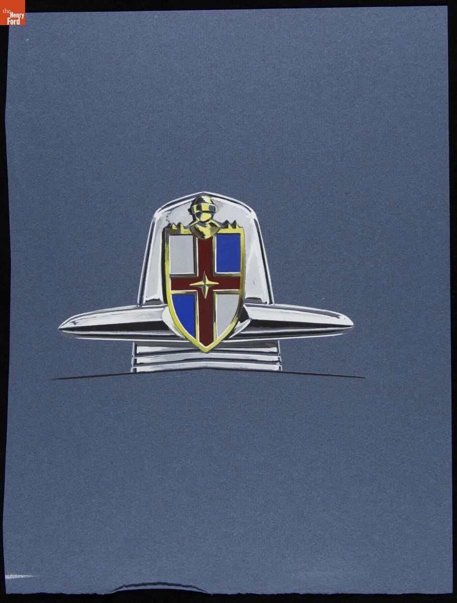 Edsel Ford and Bob Gregorie created the original Lincoln Continental prototype in 1939, and Lincoln built a production version from 1940-1948. This drawing shows a proposed insignia for a next-generation Continental model. The Continental Mark II arrived -- under its own brand, separate from Lincoln -- for 1956.