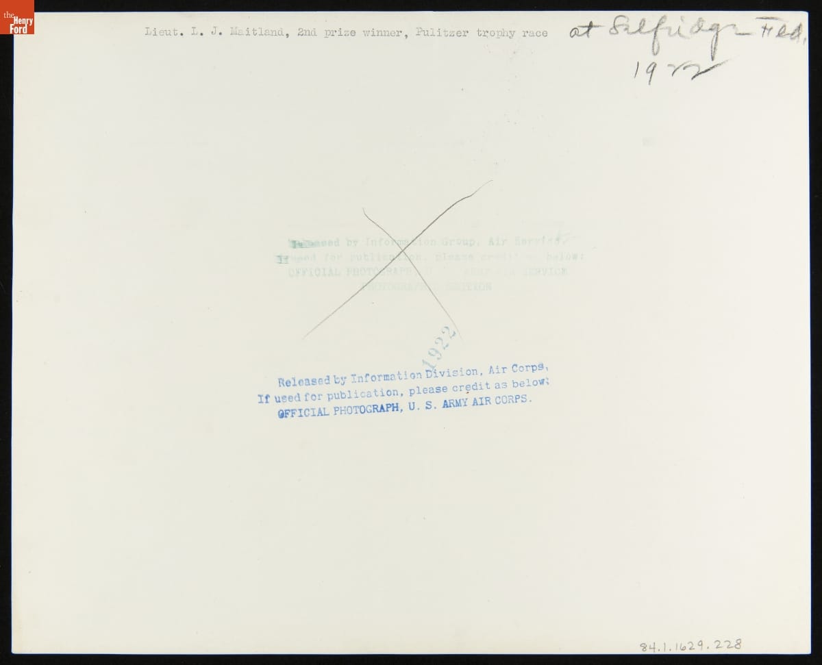 Lieutenant Lester J. Maitland, 2nd Place Winner, Pulitzer Air Race, October 14, 1922
