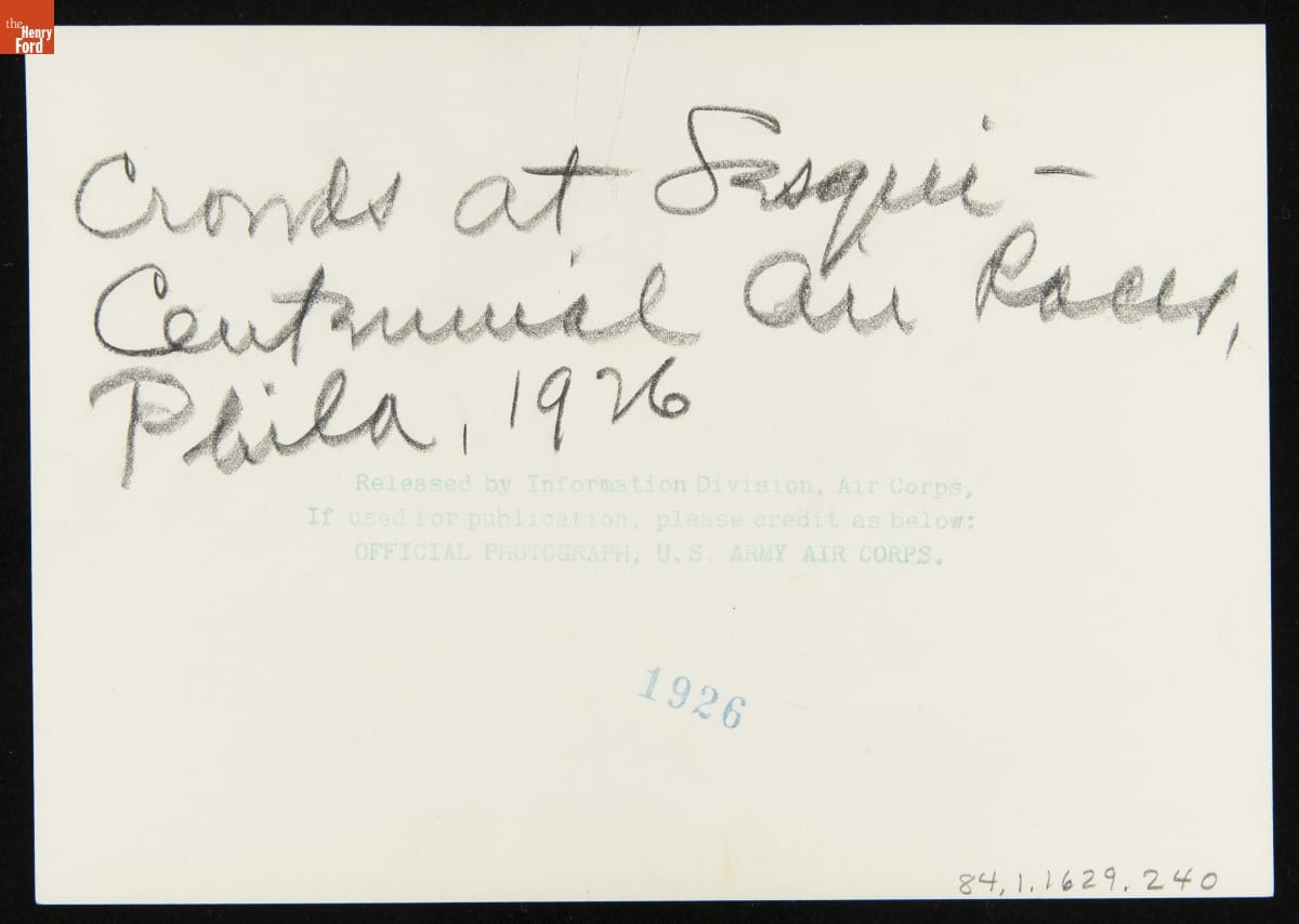 Air races provided pilots and manufacturers with an opportunity to test new technologies and show them off to enthusiastic audiences. From the 1920s through the 1940s, the annual National Air Races were the premier competition in the United States. The 1926 event took place in Philadelphia, Pennsylvania, to commemorate the 150th anniversary of the Declaration of Independence.
