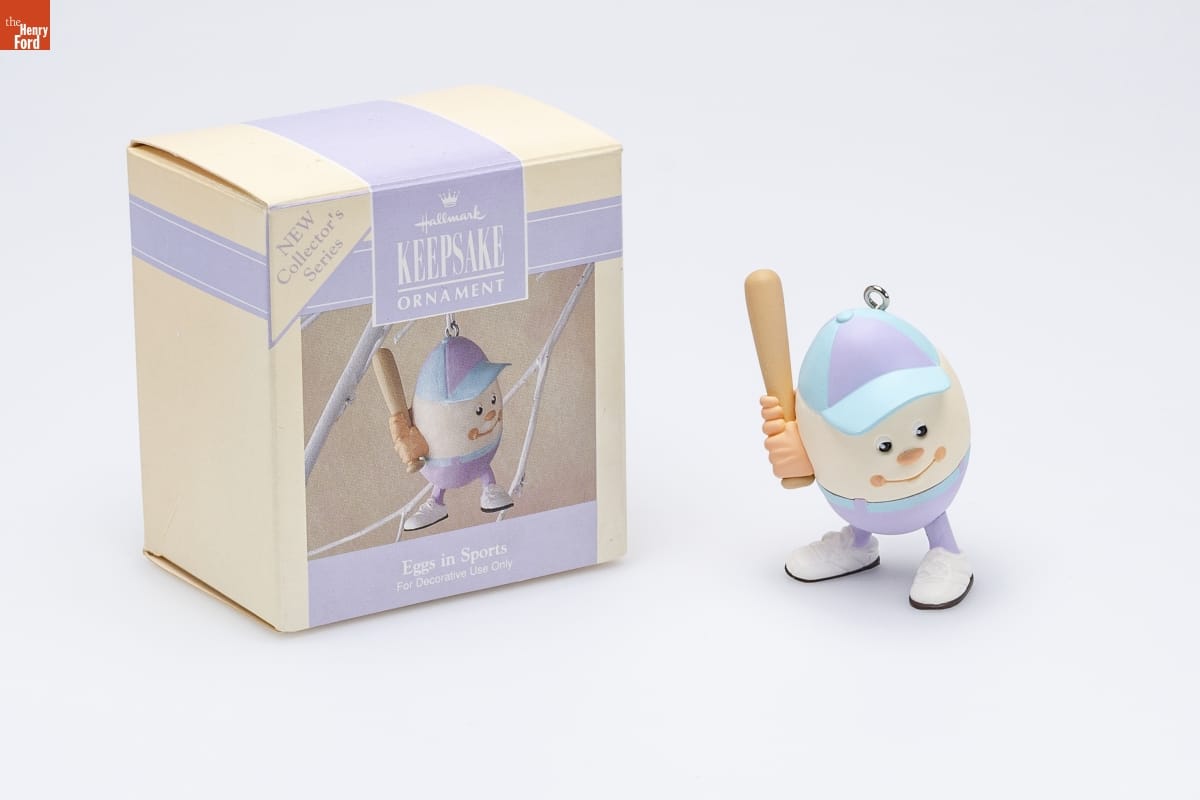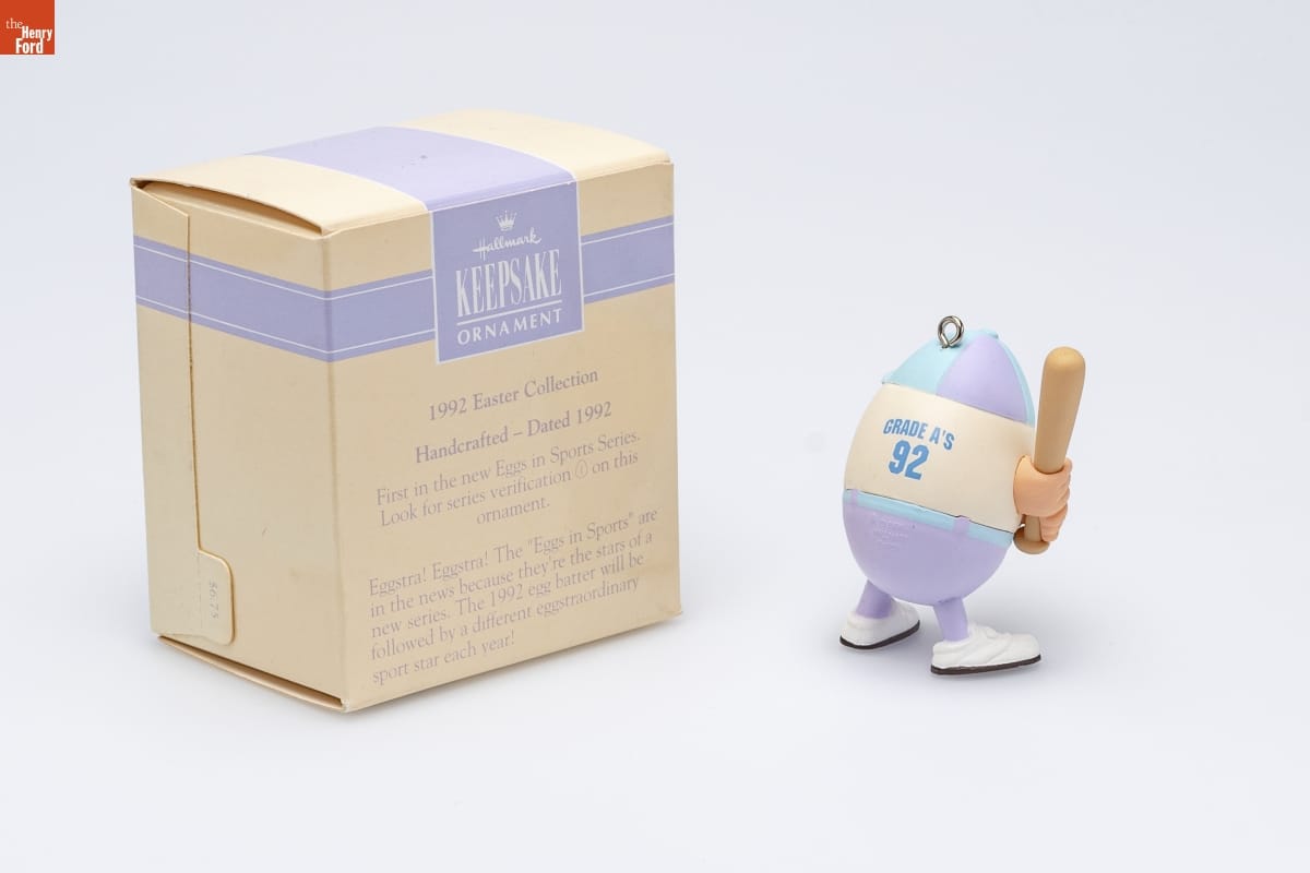 Hallmark / KEEPSAKE / ORNAMENT / 1992 Easter Collection / Handcrafted - Dated 1992 / First in the new Eggs in Sports Series. / Look for series verification 1 on this / ornament. / Eggstra! Eggstra! The "Eggs in Sports" are / in the news because they're the stars of a / new series. The 1992 egg batter will be / followed by a different eggstraordinary / sport star each year!