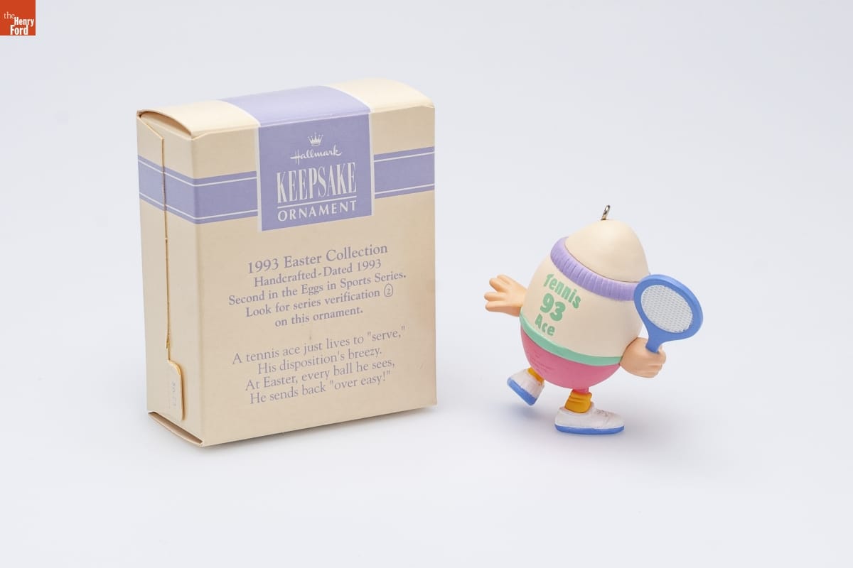 Hallmark / KEEPSAKE / ORNAMENT / 1993 Easter Collection / Handcrafted - Dated 1993 / Second in the Eggs in Sports Series. / Look for series verification 2 / on this ornament. / A tennis ace just lives to "serve," / His disposition's breezy. / At Easter, every ball he sees, / He sends back "over easy!"