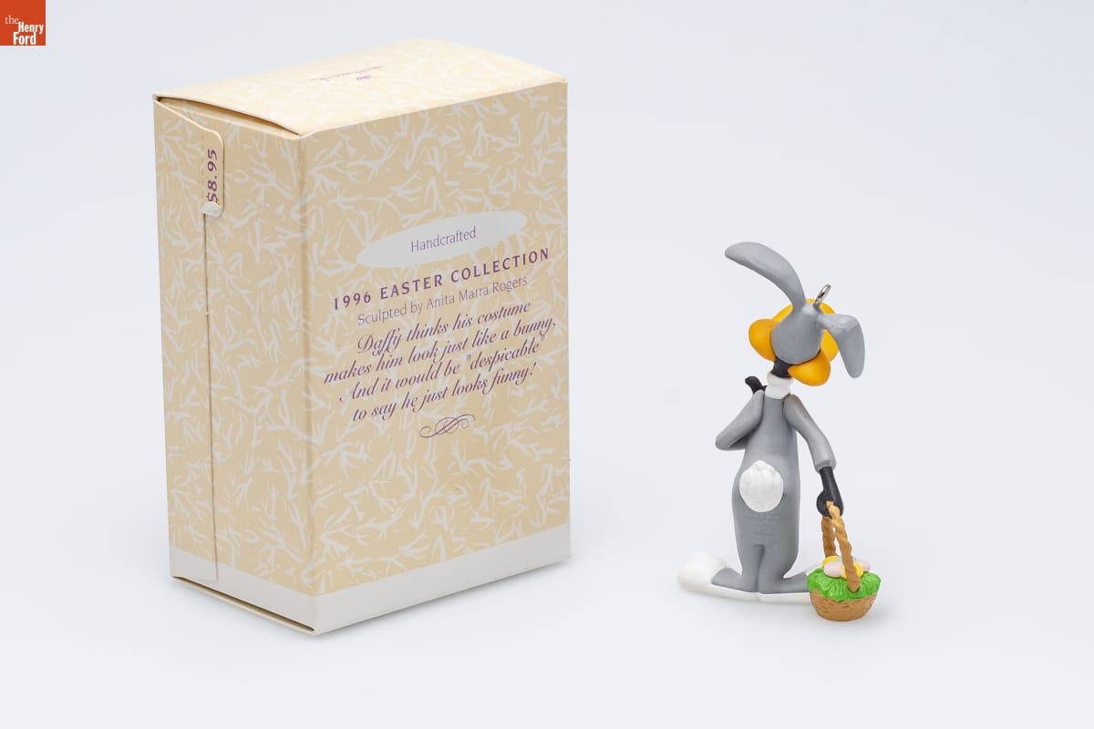 Handcrafted / 1996 EASTER COLLECTION / Sculpted by Anita Marra Rogers / Daffy thinks his costume / makes him look just like a bunny, / And it would be "despicable" / to say he just looks funny!