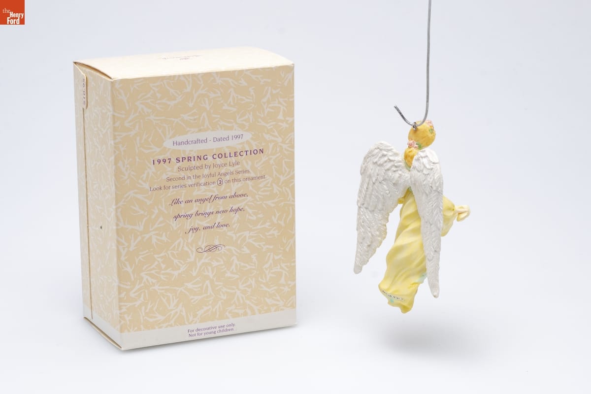 Handcrafted - Dated 1997 / 1997 SPRING COLLECTION / Sculpted by Joyce Lyle / Second in the Joyful Angels Series. / Look for series verification 2 on this ornament. / Like an angel from above, / spring brings new hope, / joy, and love. / For decorative use only. / Not for young children.