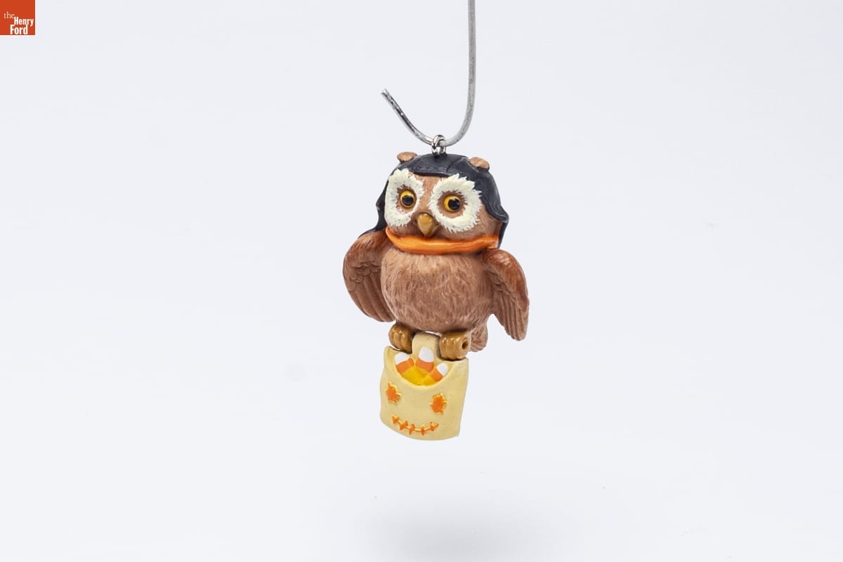 Since the early 2000s, Hallmark has created ornaments to celebrate Halloween. In 2003, Hallmark produced a black-silhouetted house-shaped display called 1300 Old Oak Road. Halloween revelers used the dark--yet festive--decoration to exhibit ornaments of skeletons, pumpkins, ghosts, and bats, hanging them in the cutout windows and doors or other hooks.