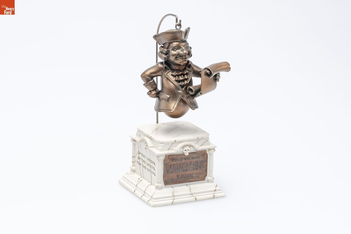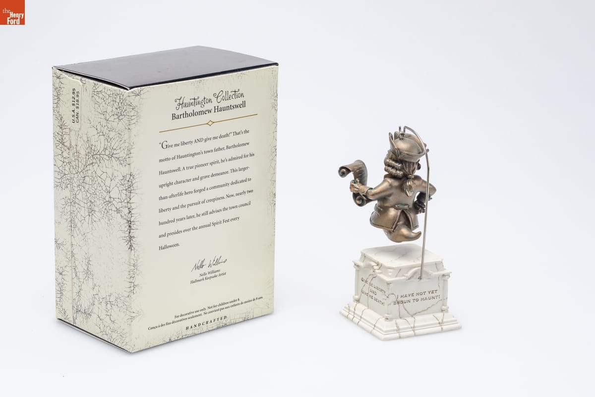 Hallmark has created Halloween ornaments since the early 2000s. The company produced a series of Halloween ornaments for its Hauntington Collection in 2005. Building displays depicting the town of Hauntington became backdrops for ornaments like this one, a statue of one of the town's founders, Bartholomew Hauntswell. The collection celebrated the fun--and creepy--spirit of Halloween.