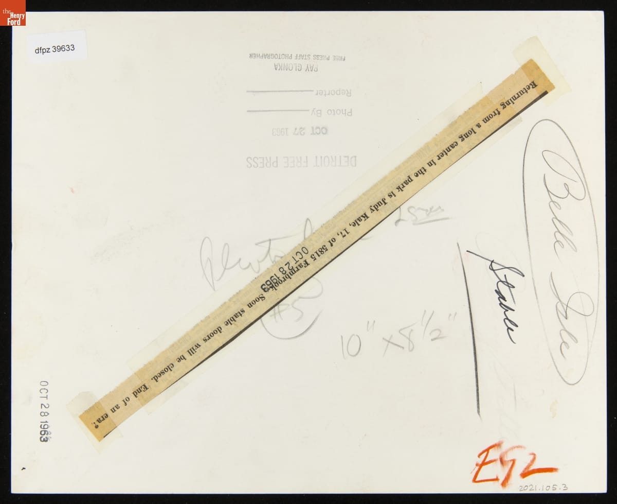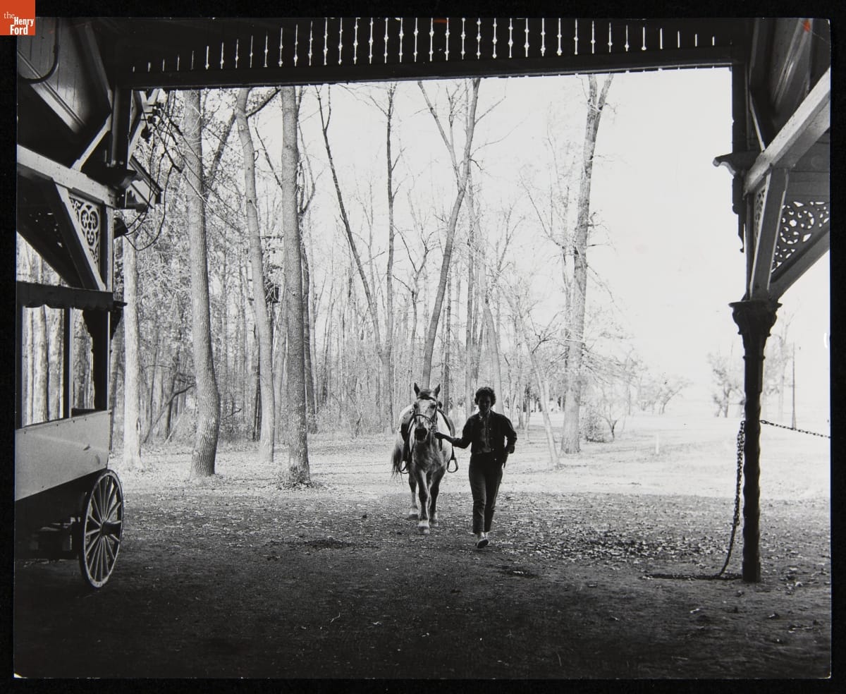Judy Kale Returns a Horse to the Riding Stable on Belle Isle, Detroit, Michigan, October 27, 1963