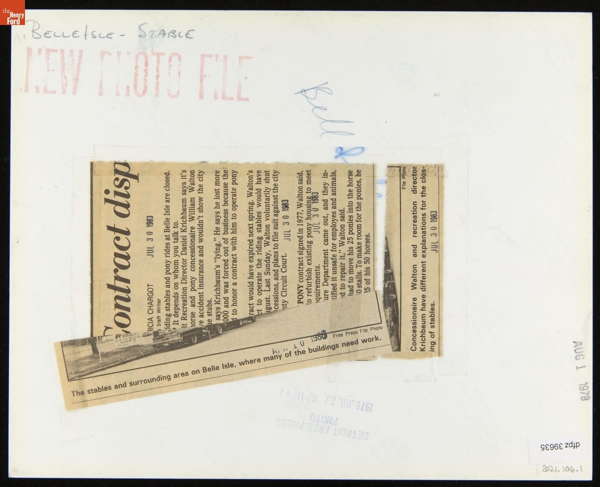 Horse Stable on Belle Isle, Detroit, Michigan, July 27, 1978