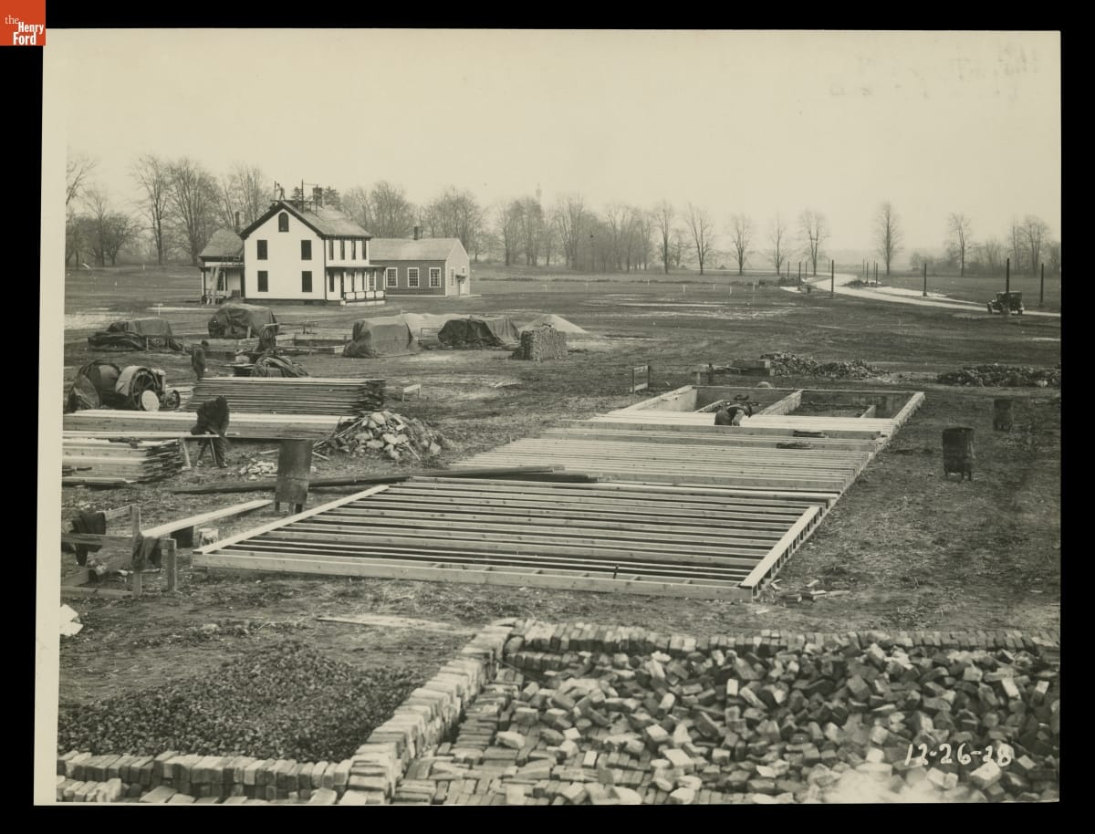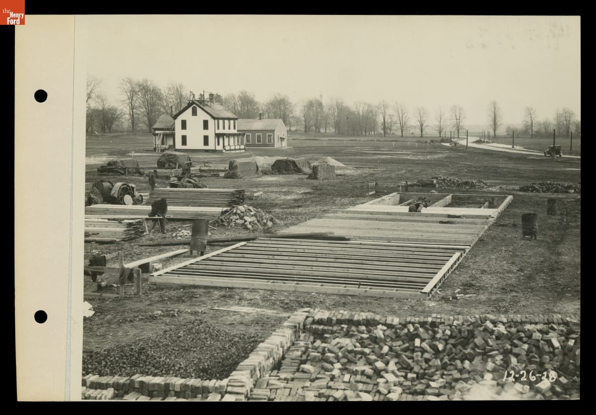Foundations for the Menlo Park Complex during Reconstruction in Greenfield Village, December 1928