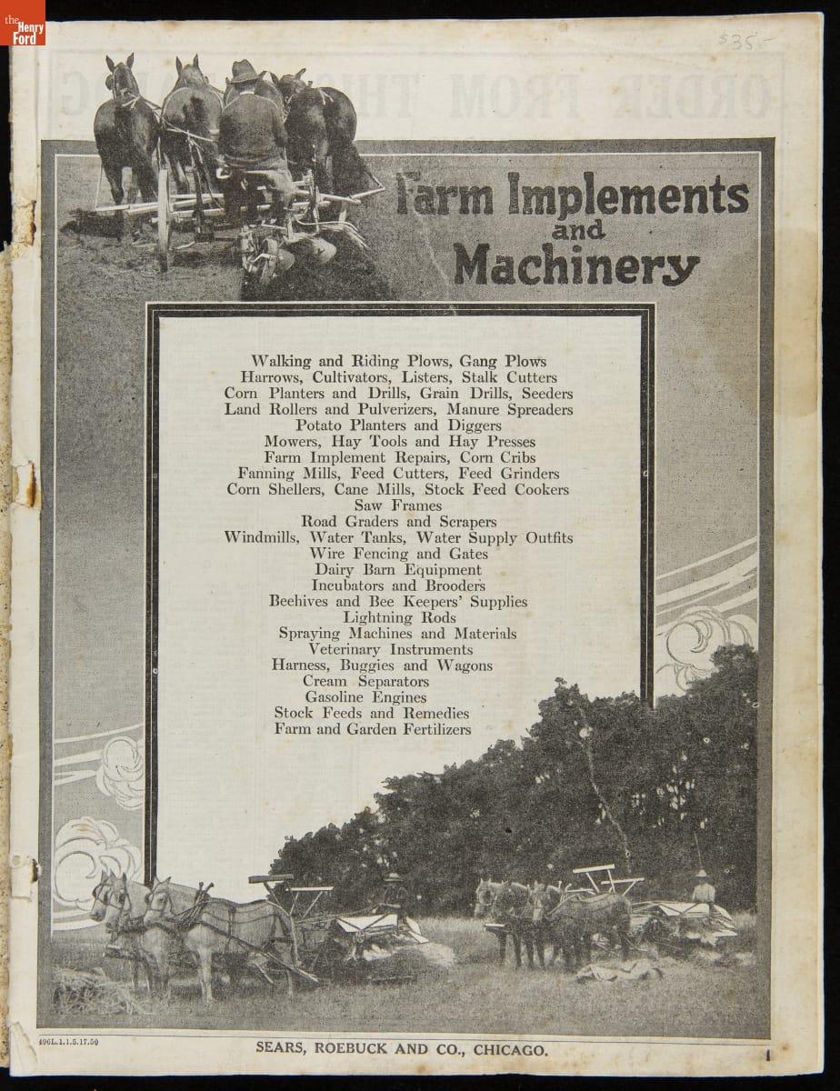 Sears, Roebuck and Company Trade Catalog, "Special Catalog of Farm Implements and Machinery," circa 1918