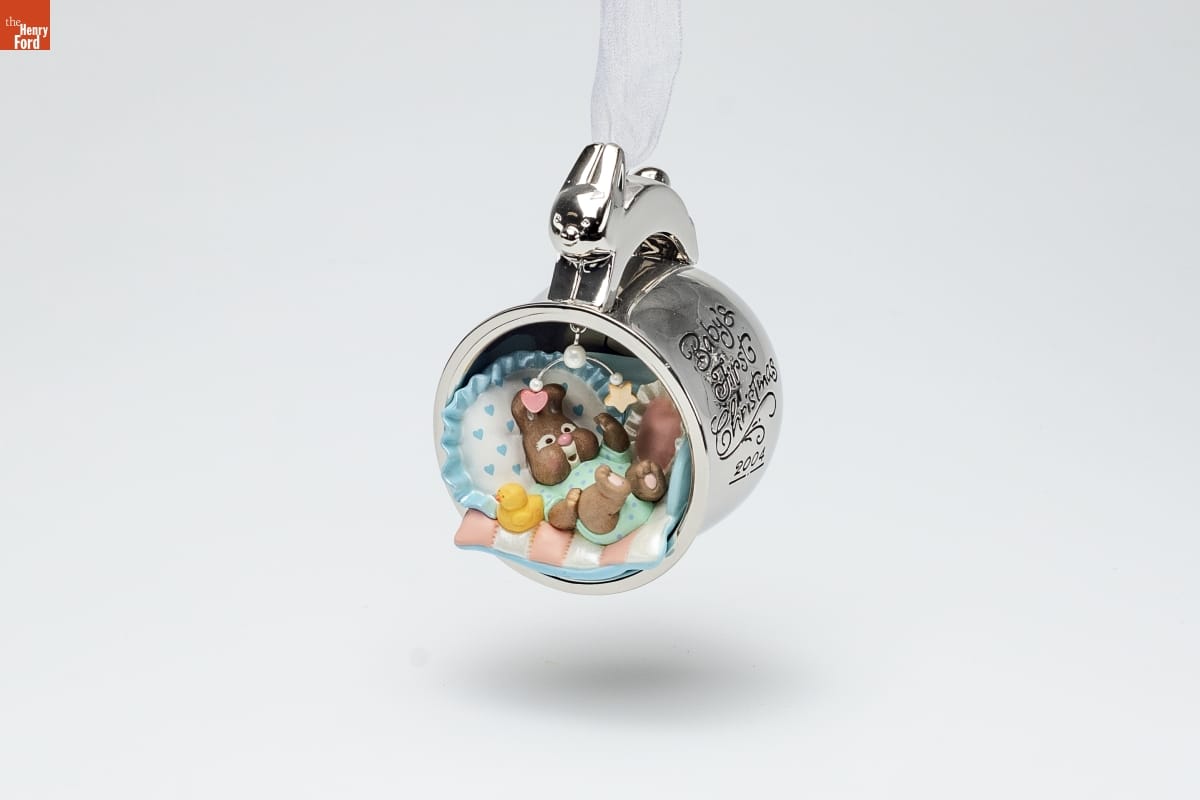 Already known for greeting cards, Hallmark introduced a line of Christmas ornaments in 1973. The company's annual release of an increasing array of ornaments appealed to customers' interest in marking memories and milestones as well as expressing one's personality and unique tastes. Purchasing an ornament like this one would bring back happy family memories of that event year after year.