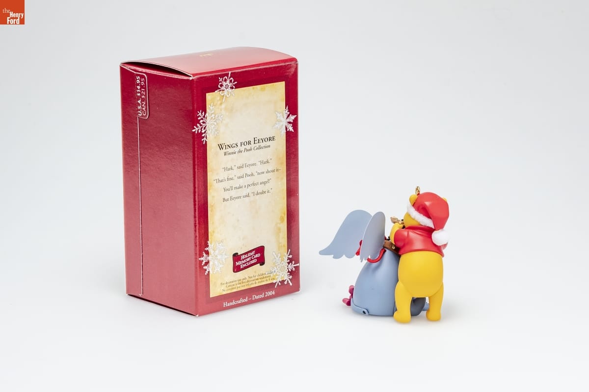 WINGS FOR EEYORE / Winnie the Pooh Collection / "Hark," said Eeyore. "Hark." / "That's fine," said Pooh, "now shout it-- / You'll make a perfect angel!" / But Eeyore said, "I doubt it." / HOLIDAY / MEMORY CARD / ENCLOSED / For decorative use only. Not for children under 8. / Concue a des fins decoratives seulement. / Ne convient pas aux enfants de moins de 8 ans. / Handcrafted - Dated 2004
