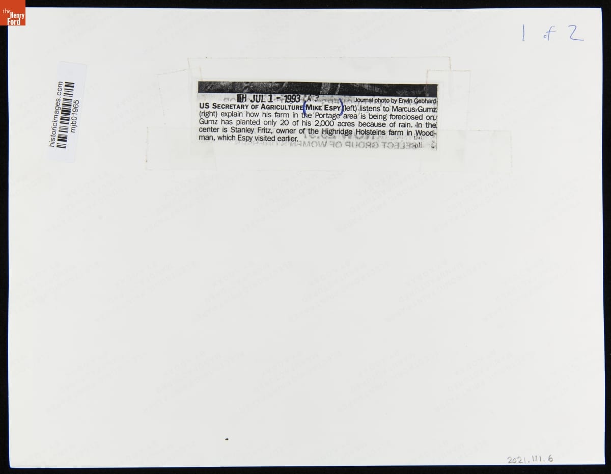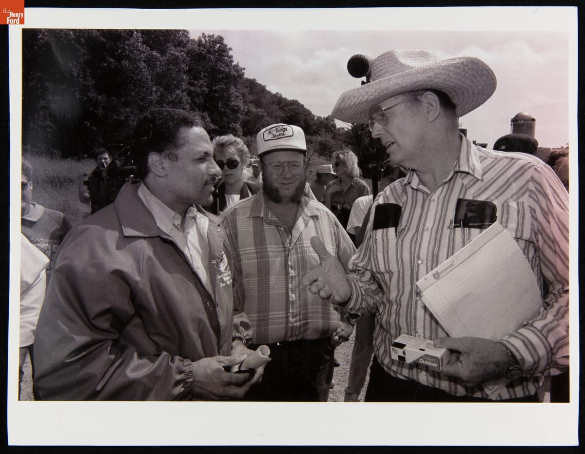 United States Secretary of Agriculture Mike Espy Talking with Wisconsin Farmer Marcus Gumz, July 1, 1993