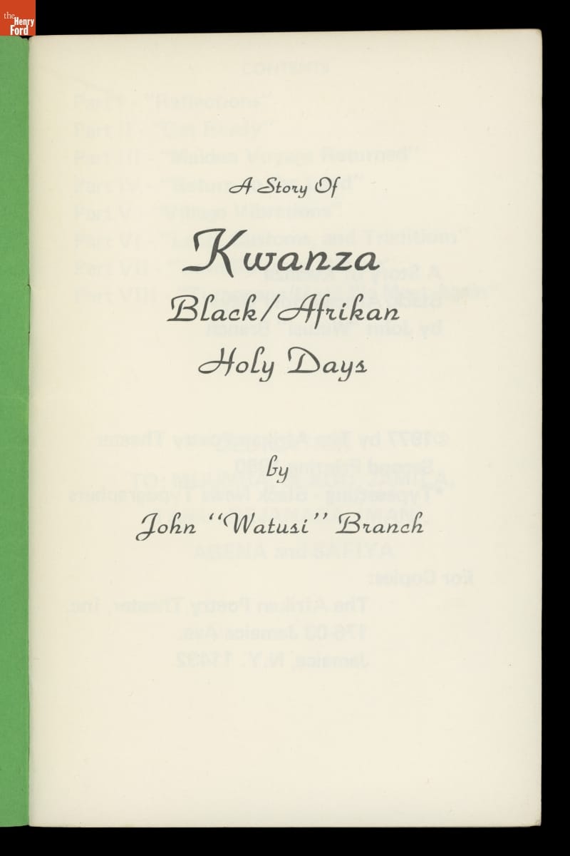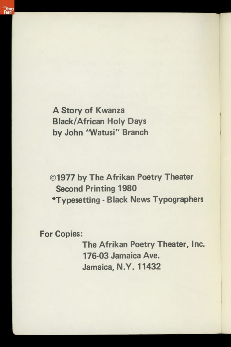 "A Story of Kwanza: Black/Afrikan Holy Days," 1977