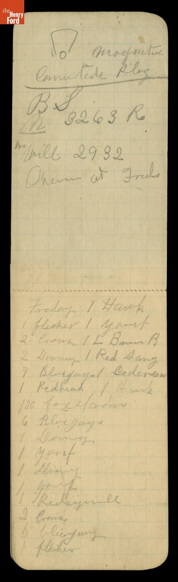 Henry Ford always carried a small notebook to jot down important pieces of information or simple reminders of things to remember. The over 50 small jot books give a sense of a busy man trying to capture information on the fly. The contents vary from questions to ask Thomas Edison to names and addresses to grocery lists.