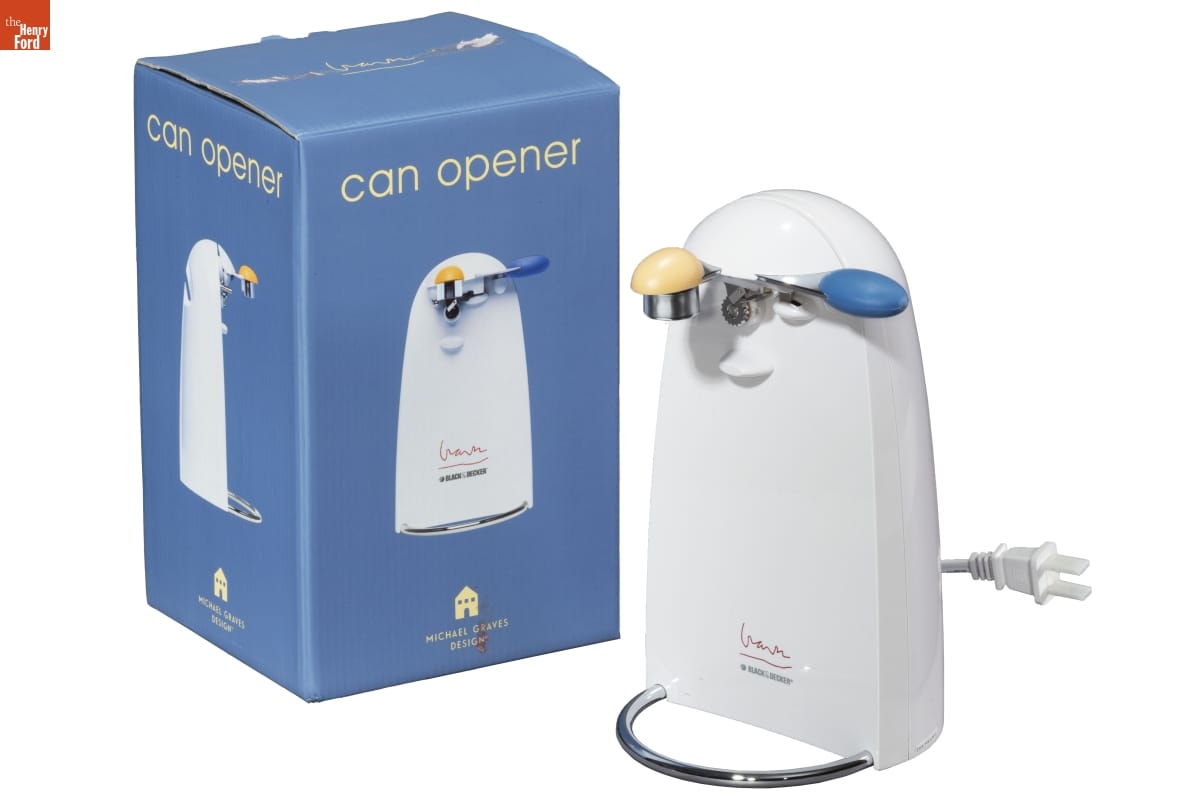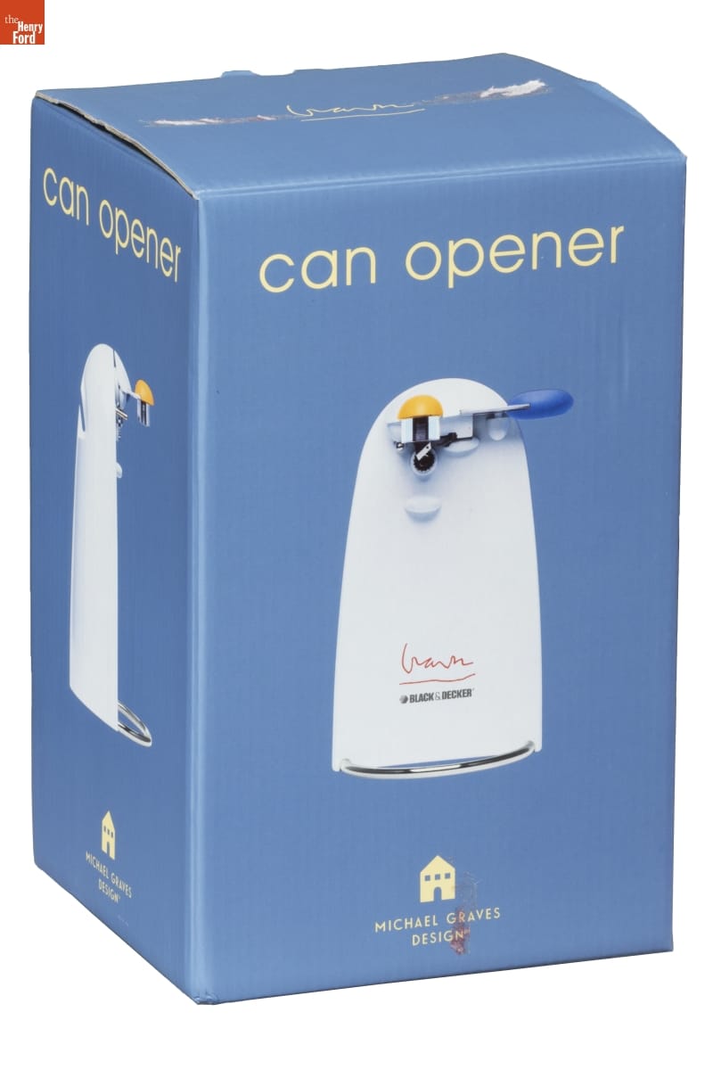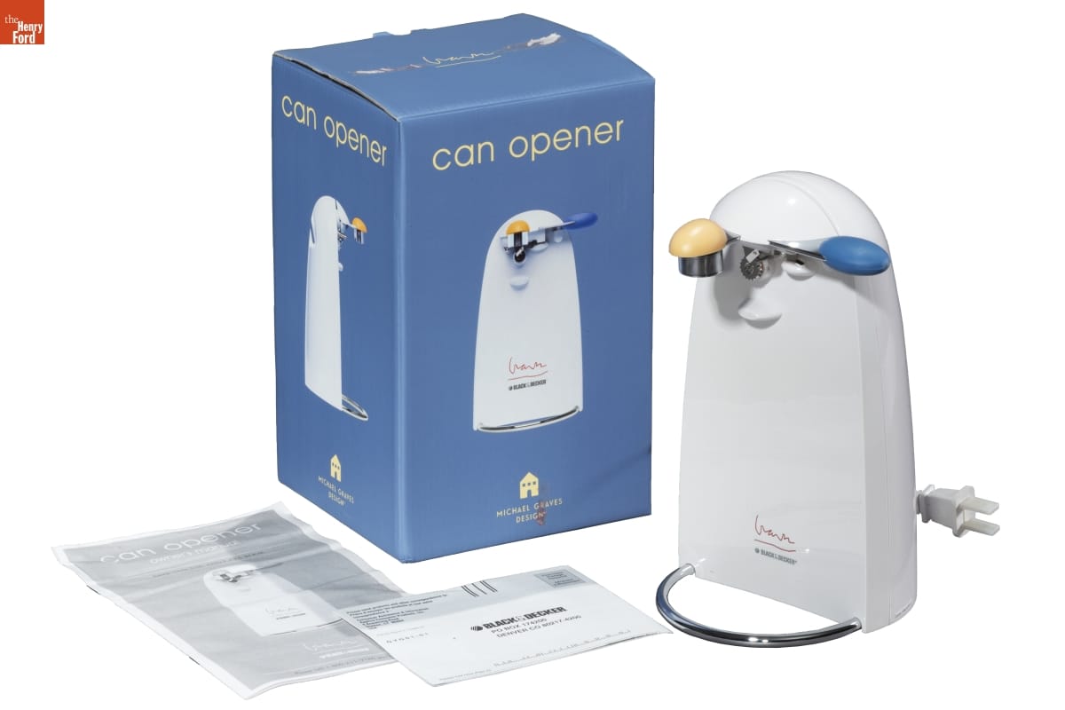 can opener / BLACK & DECKER / MGD150 / Built-In Knife Sharpener Removable Cutting Blade / Extra-Tall Design Automatic Shut Off / Power-Pierce Cutter / Michael Graves / The highly acclaimed work of Michael Graves has restored a sense of / humanity to modern architecture, which in turn makes him one of the / most recognized architects of our time. Together with Disney [...] / The Michael Graves product line is an inspired balance of form and / function. At once it is sensible and sublime, [...] / Graves