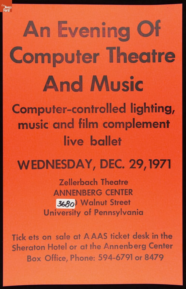 Poster, "An Evening of Computer Theatre and Music," 1971