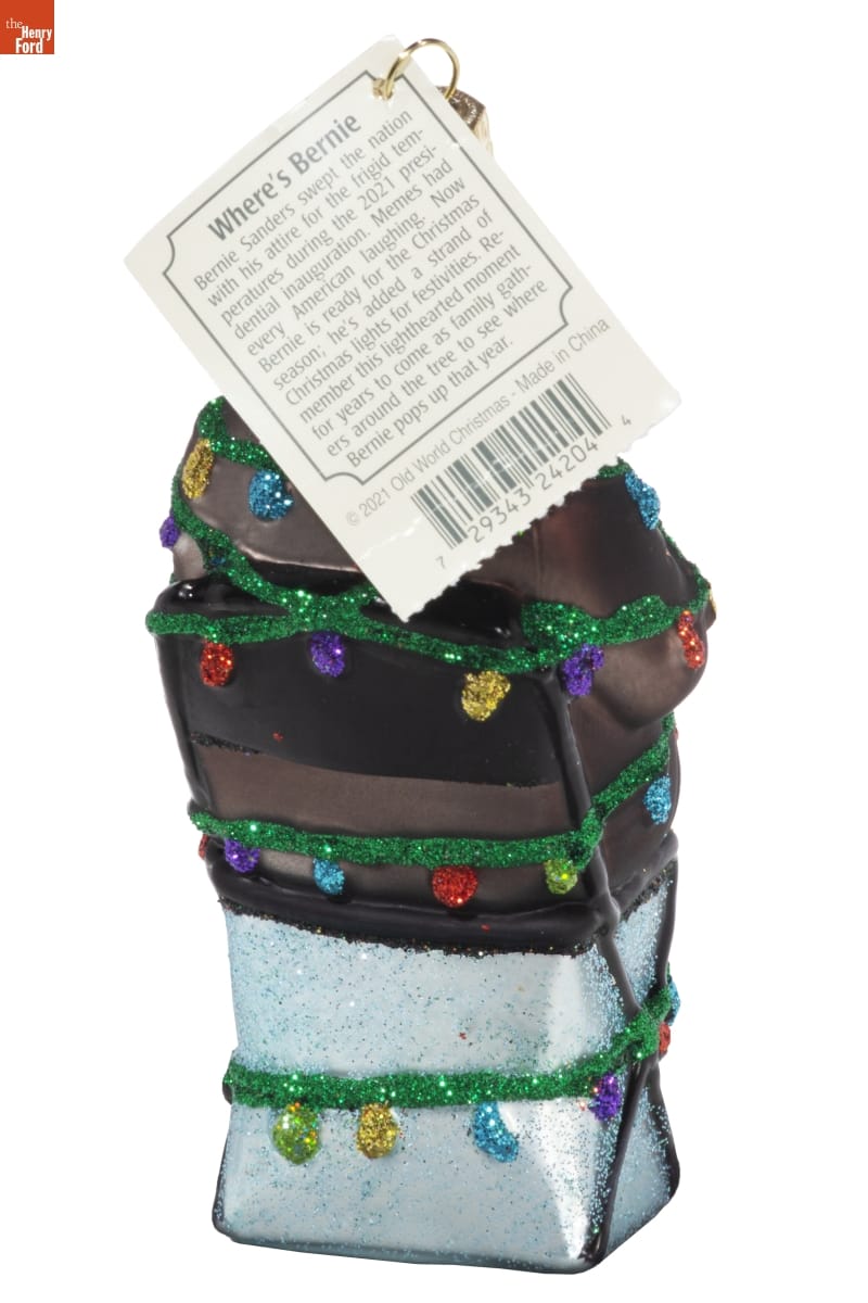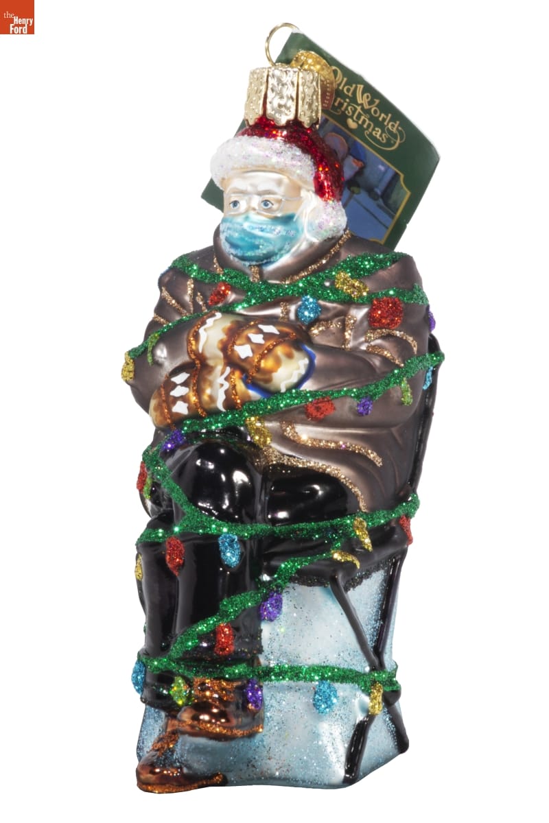 In the 1870s, the first mass-produced Christmas ornaments became a popular way to personalize holiday decor. In the 21st century, manufacturers create ornaments that reference broader culture. Old World Christmas made this ornament of US Senator Bernie Sanders that caricatures his appearance at the 2021 presidential inauguration. Pictures of Sanders at the event went viral on social media.
