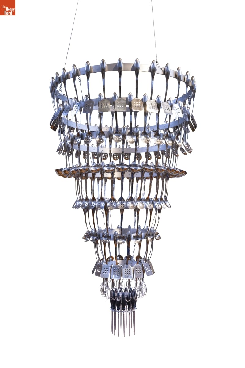 Chandelier designed and fabricated by DesignGuys. Utensils designed by Michael Graves for Target Corporation.