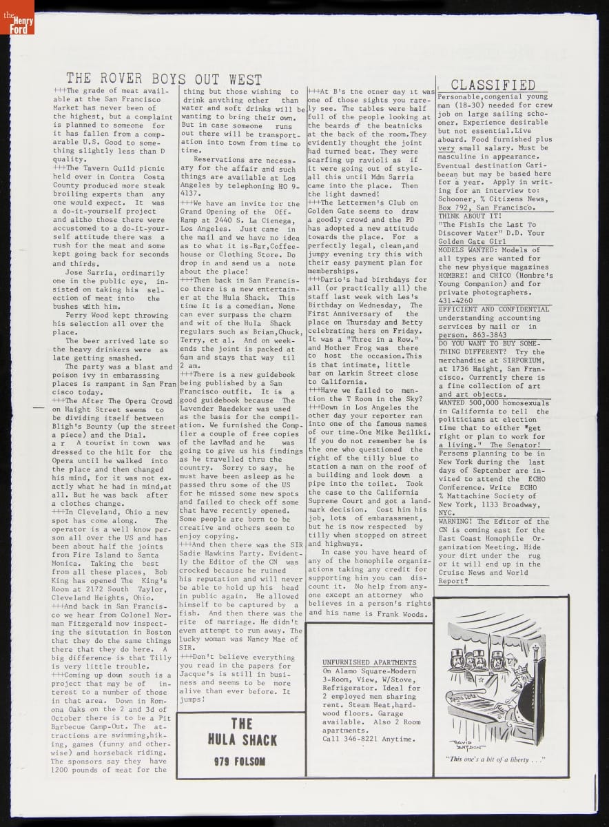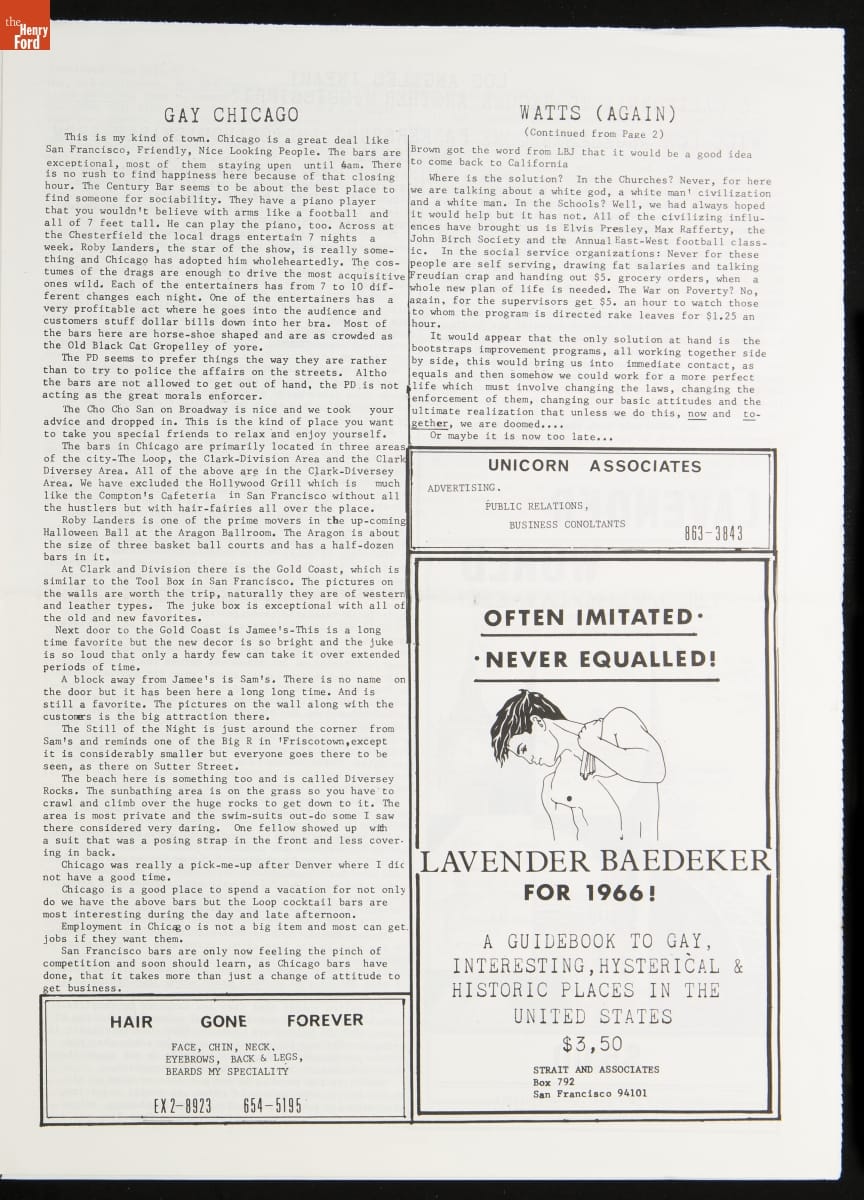 LGBTQ+ newspapers became more available beginning in the 1950s as organizations added print media to their activist tool kit. These newspapers were a regionally focused way to rally the LGBTQ+ community, share information, and fight discrimination. Many of these newspapers came to rely on gay bars as a location for disbursement as they were among the only private gay spaces in many cities.