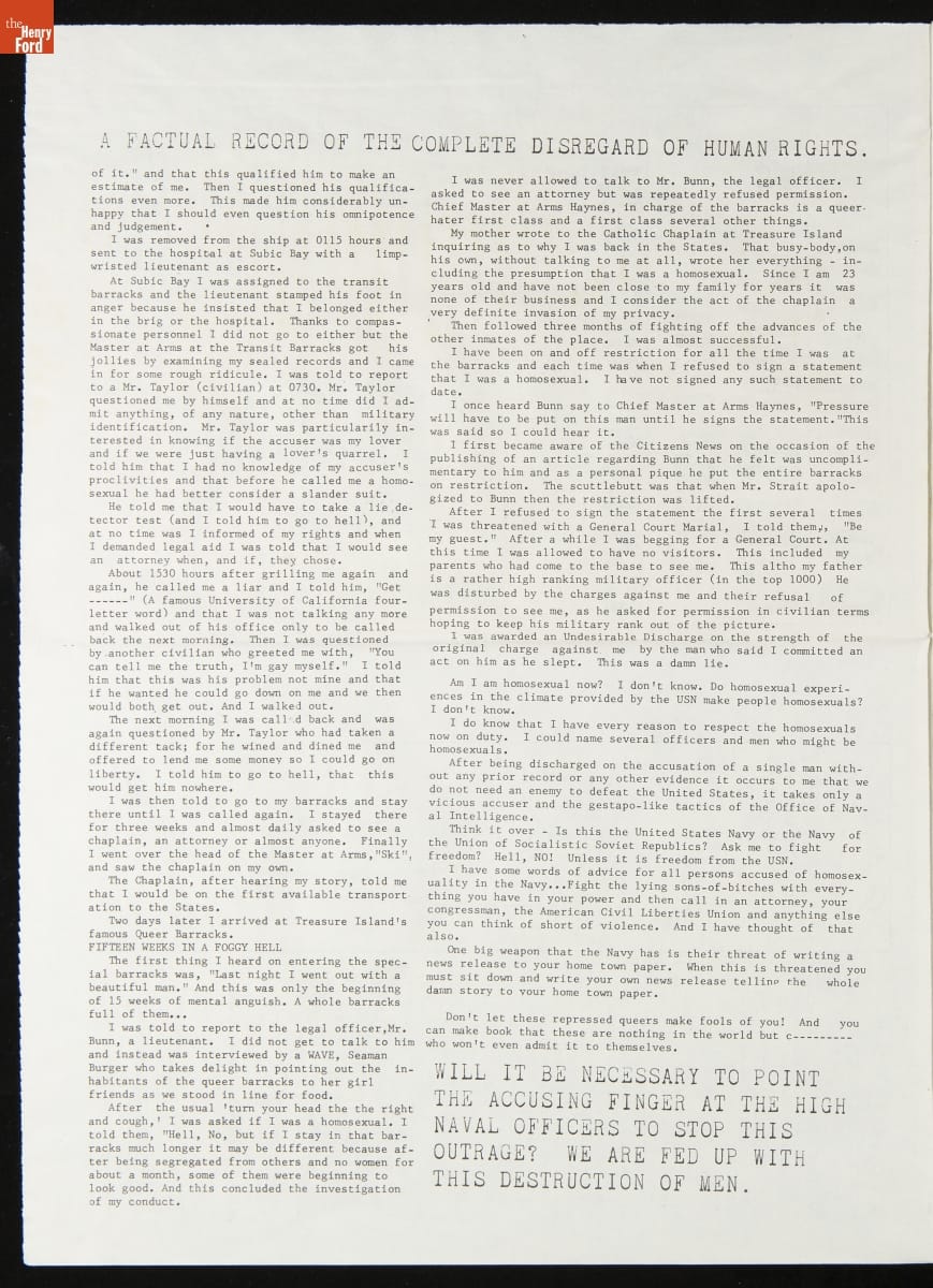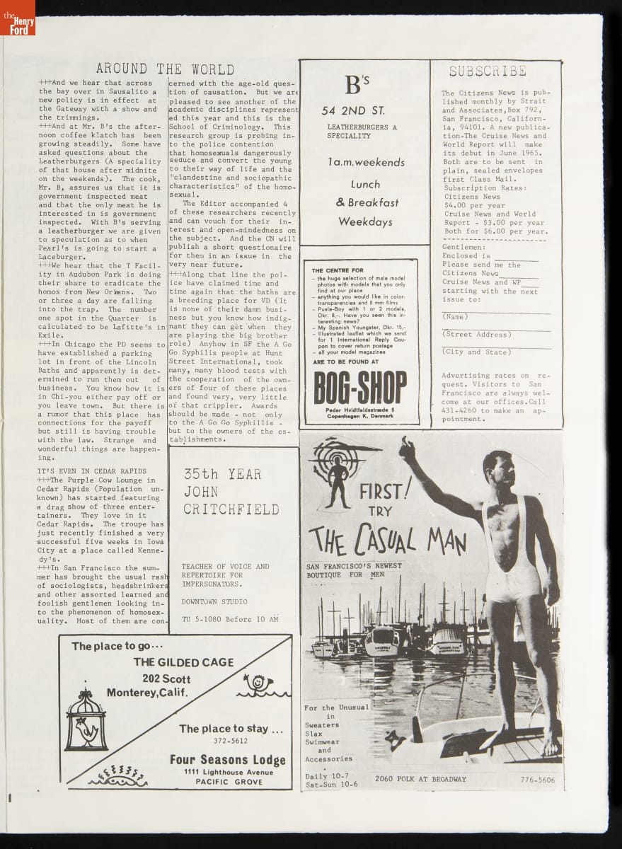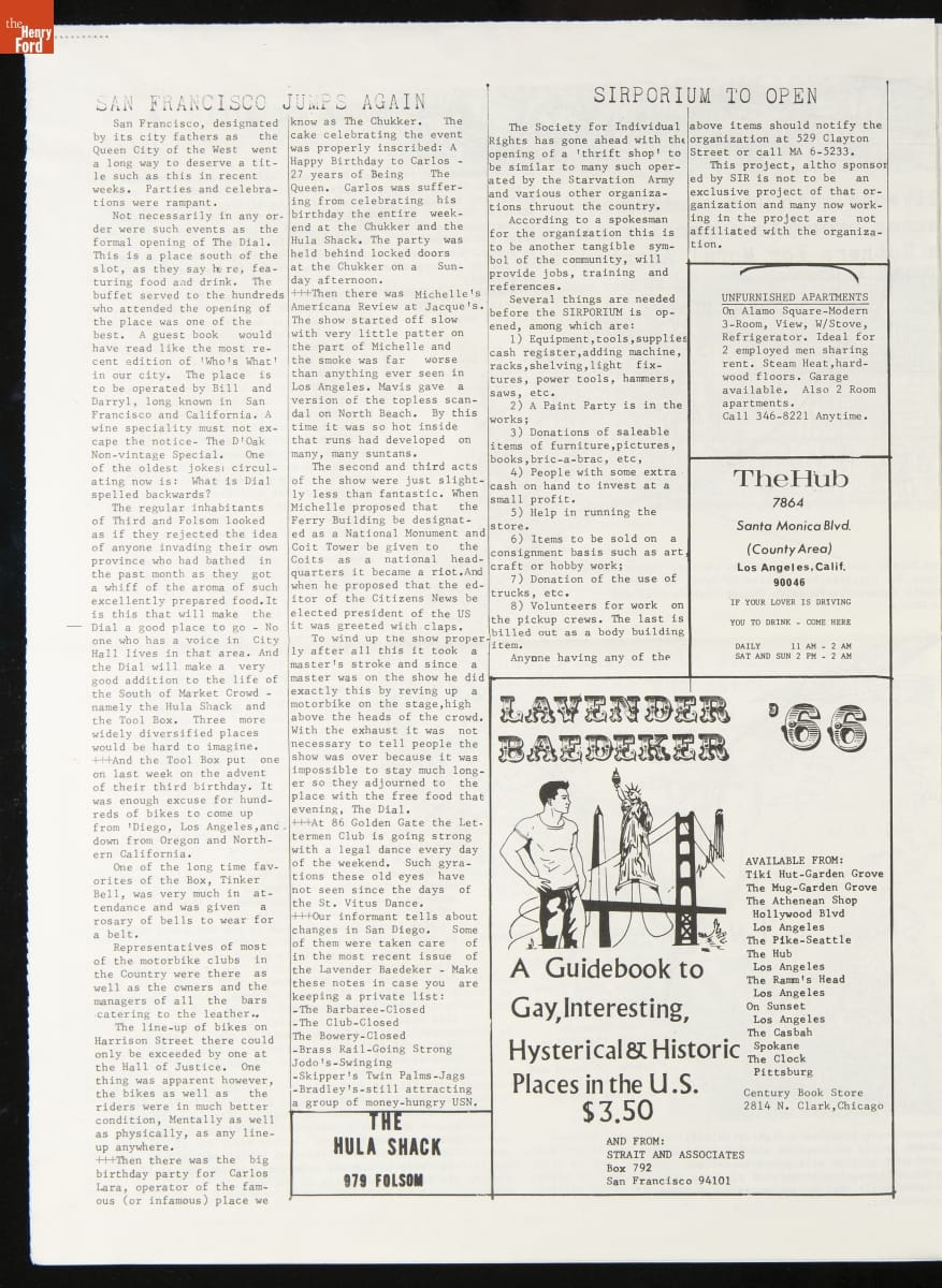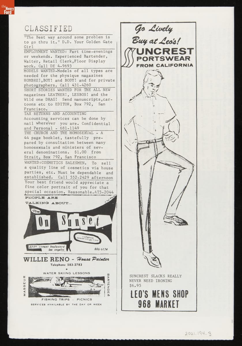LGBTQ+ newspapers became more available beginning in the 1950s as organizations added print media to their activist tool kit. These newspapers were a regionally focused way to rally the LGBTQ+ community, share information, and fight discrimination. Many of these newspapers came to rely on gay bars as a location for disbursement as they were among the only private gay spaces in many cities.