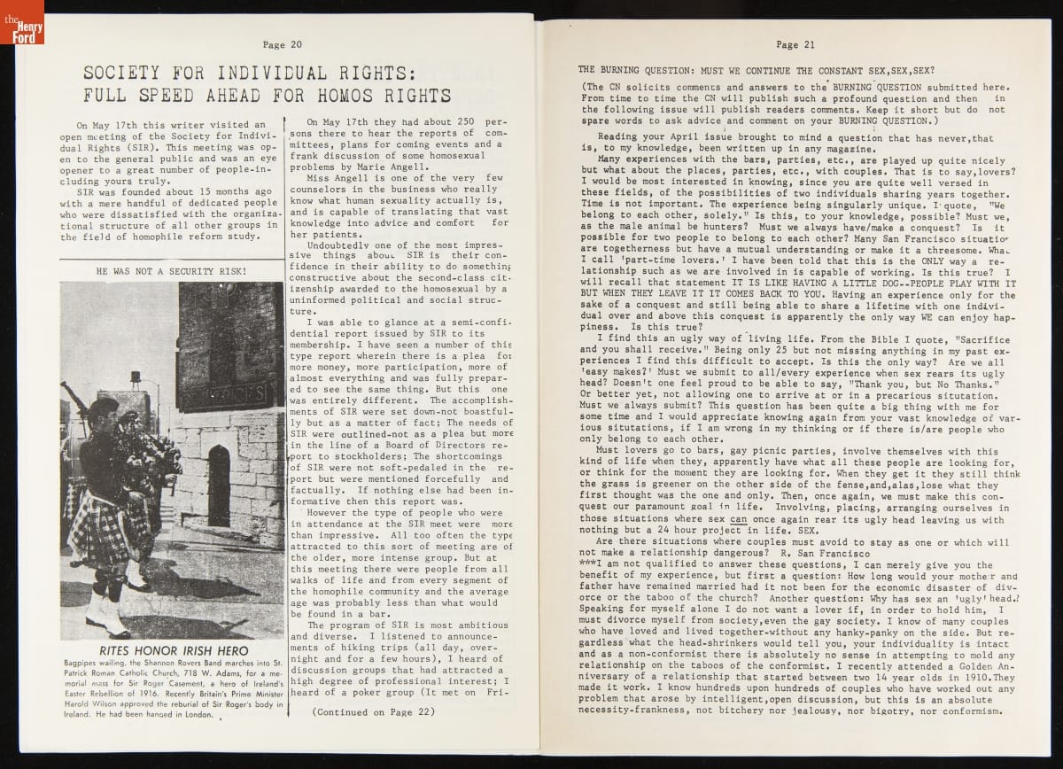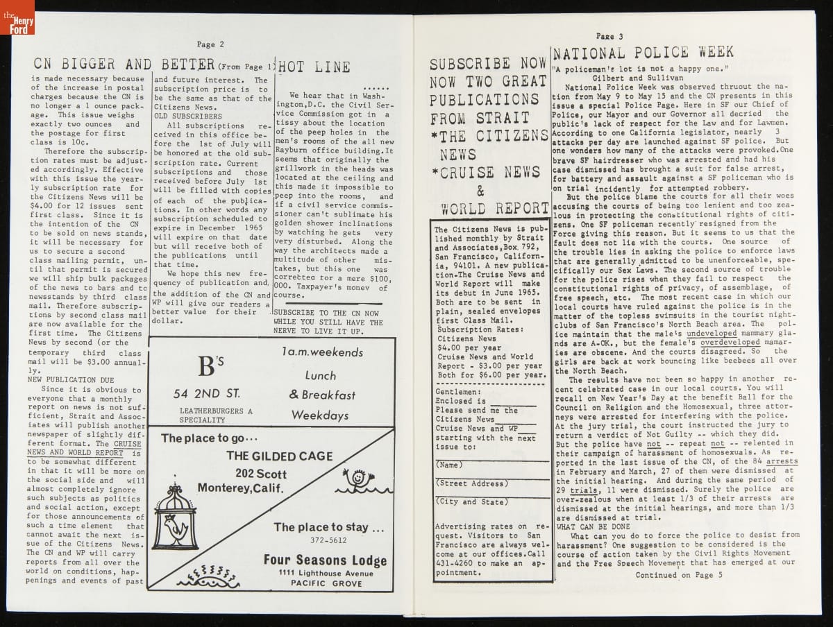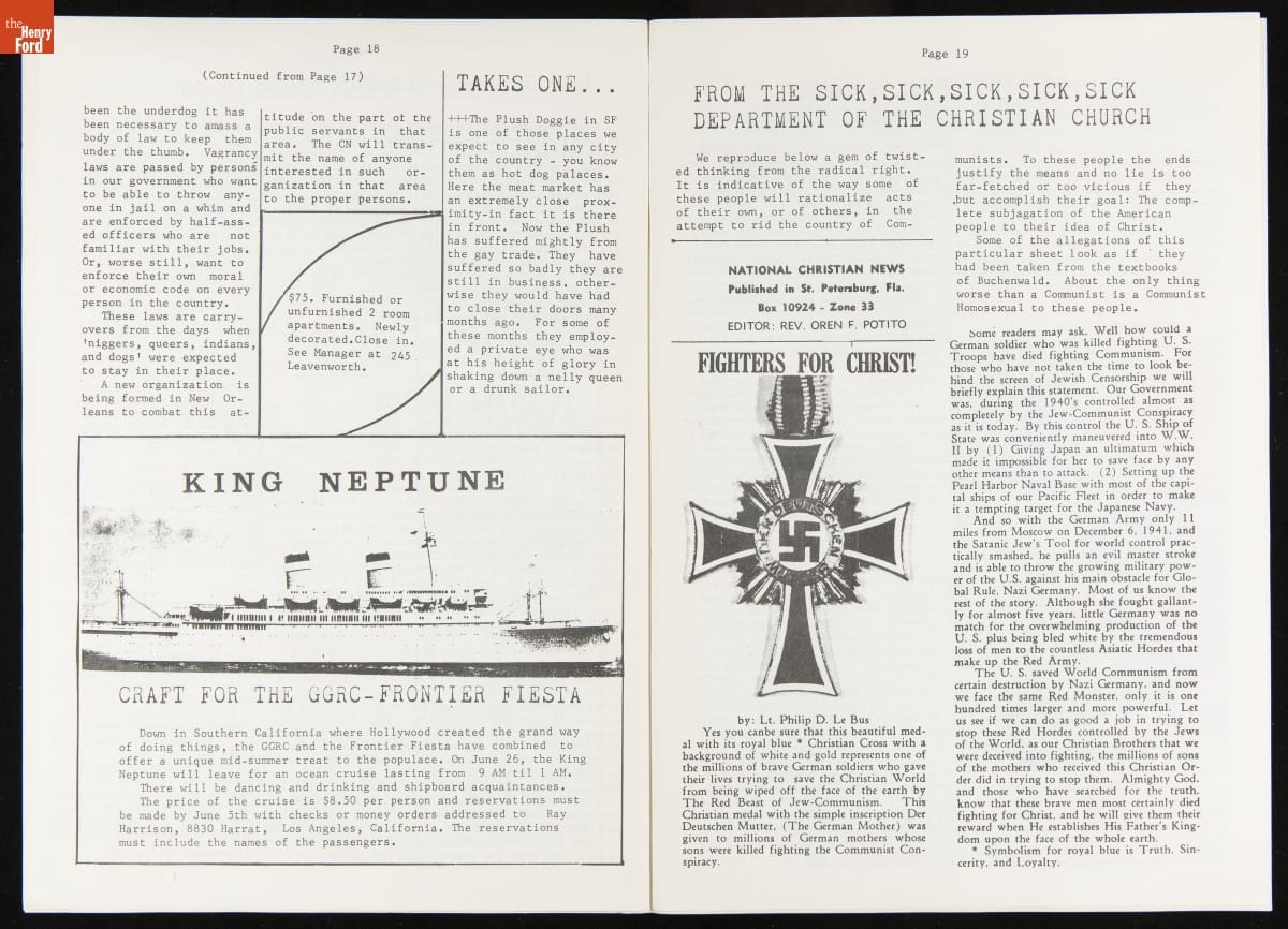 LGBTQ+ newspapers became more available beginning in the 1950s as organizations added print media to their activist tool kit. These newspapers were a regionally focused way to rally the LGBTQ+ community, share information, and fight discrimination. Many of these newspapers came to rely on gay bars as a location for disbursement as they were among the only private gay spaces in many cities.