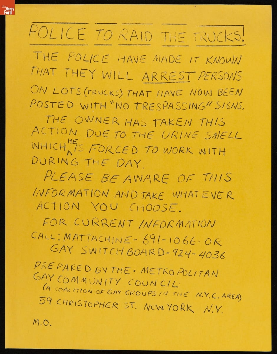 On June 28, 1969, New York police raided the Stonewall Inn--a gay club in Greenwich Village--and harassed, arrested, and maltreated its LGBTQ+ patrons. Police raids on LGBTQ+ bars were common, but this particular raid sparked a movement. These fliers evidence the fraught months following the Stonewall Uprising and the efforts of gay rights groups to organize and fight for equality.