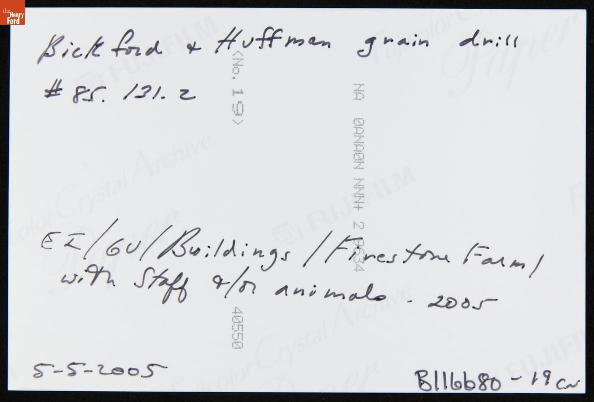 Bickford & Huffman Grain Drill at Firestone Farm in Greenfield Village, May 2005