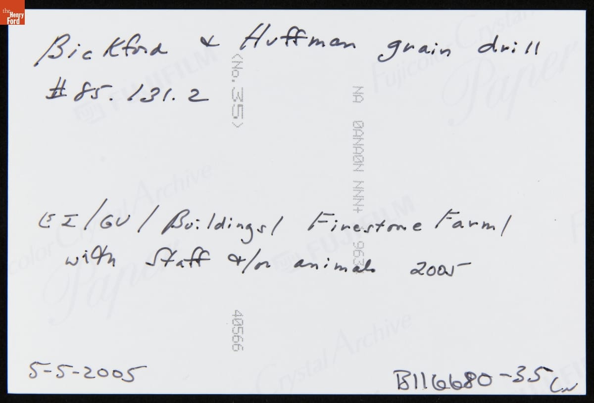 Bickford & Huffman Grain Drill at Firestone Farm in Greenfield Village, May 2005