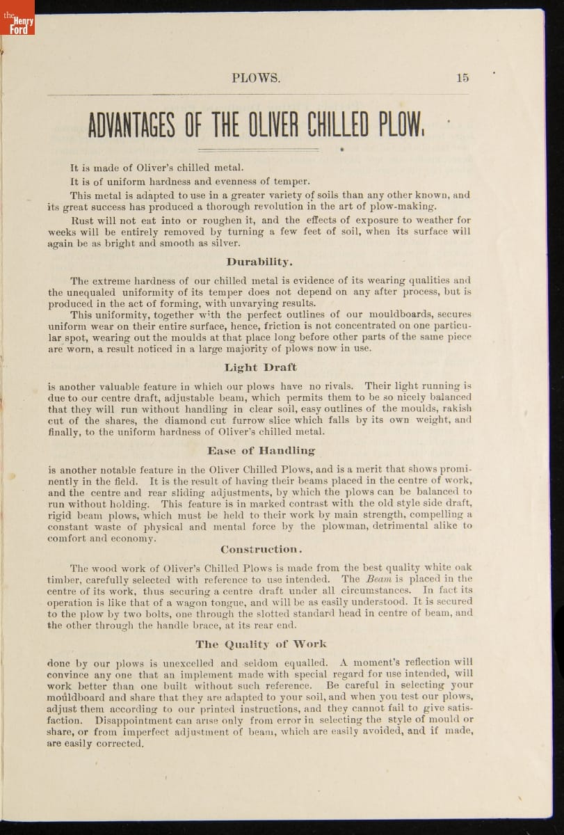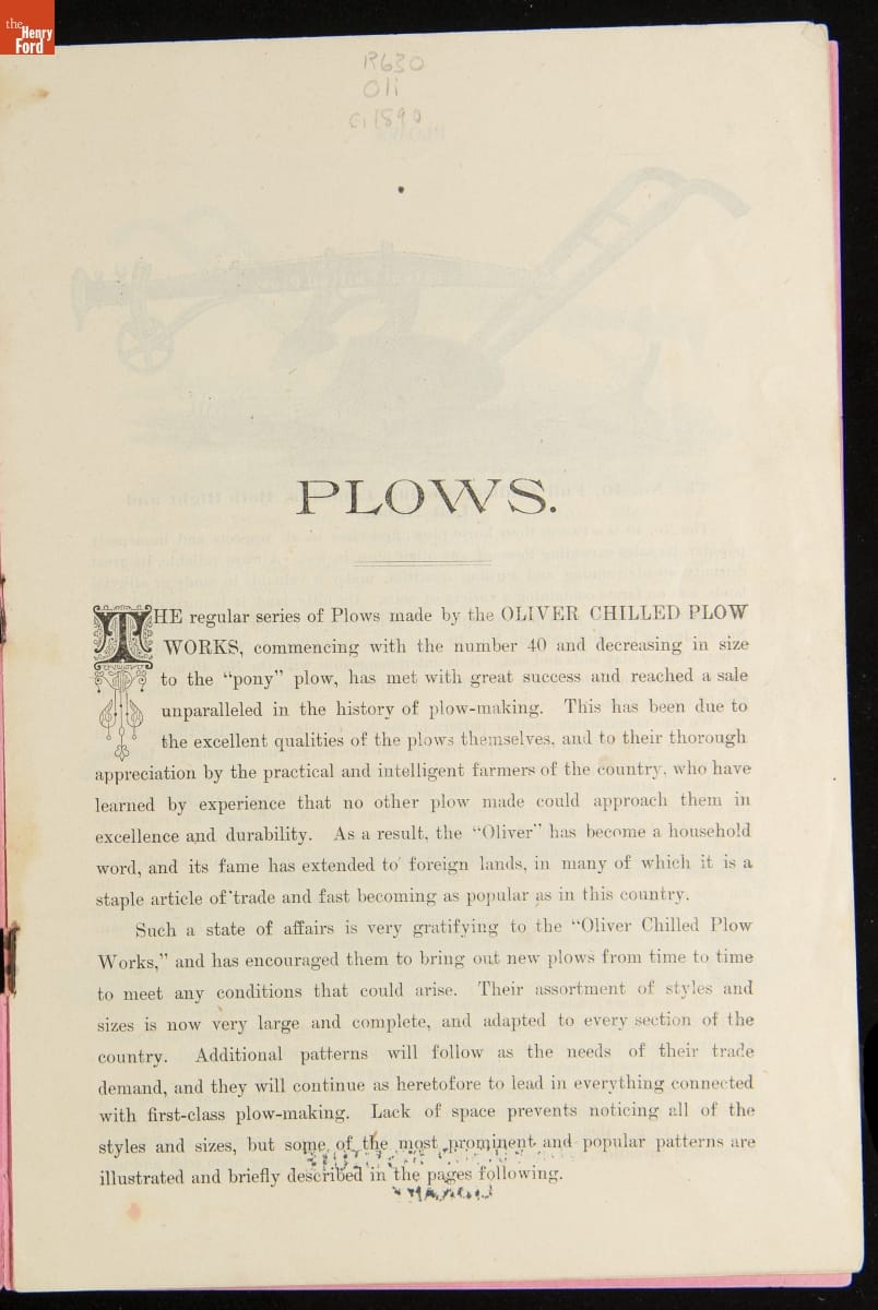 Oliver Chilled Plow Works Trade Catalog, circa 1890