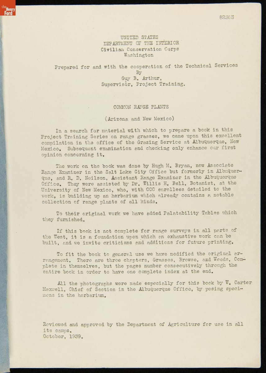 Manual, "Civilian Conservation Corps Project Training: Common Range Plants, Arizona and New Mexico," October 1939