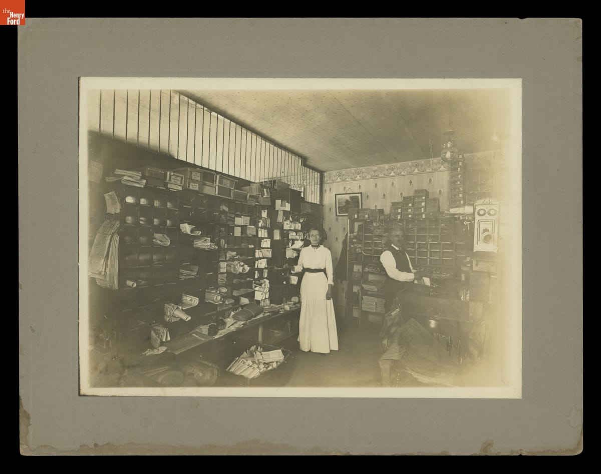 Postmaster Madison Gallogly and Mary Gallogly in the Hoxie, Kansas Post Office, circa 1913