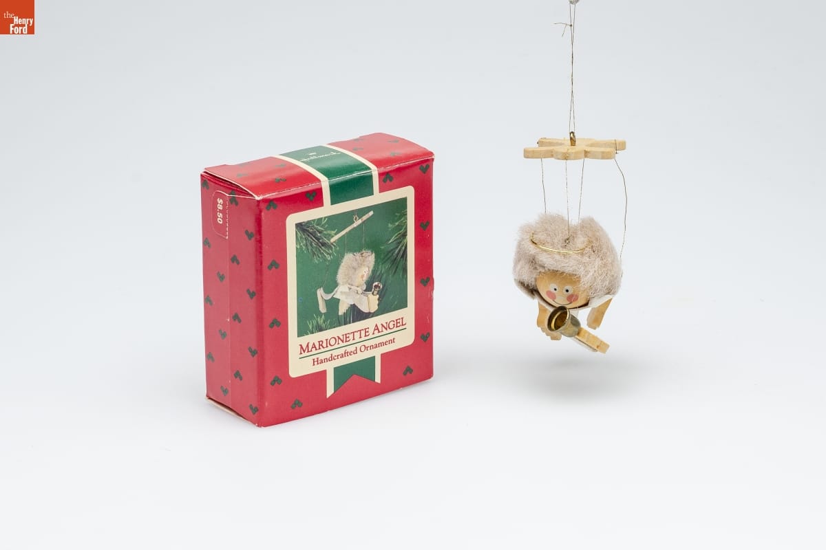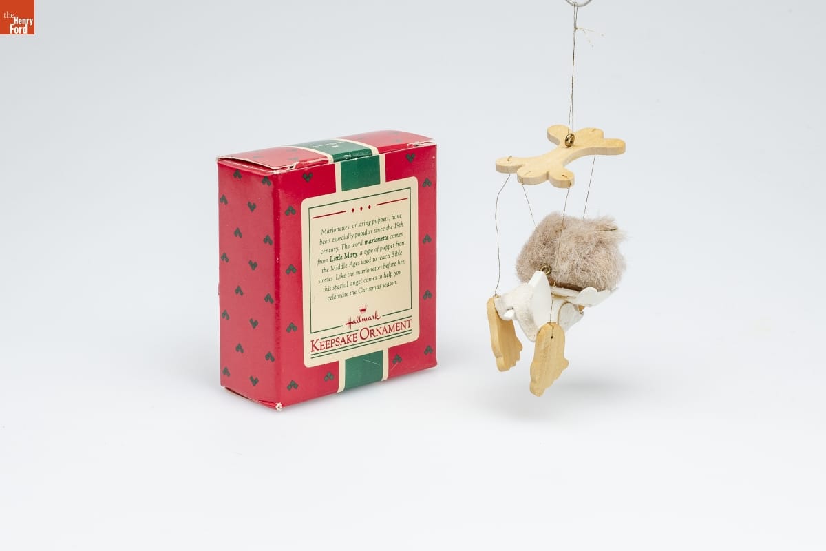 Marionettes, or string puppets, have / been especially popular since the 19th / century. The word marionette comes / from Little Mary, a type of puppet from / the Middle Ages used to teach Bible / stories. Like the marionettes before her, / this special angel comes to help you / celebrate the Christmas season. / Hallmark / KEEPSAKE ORNAMENT