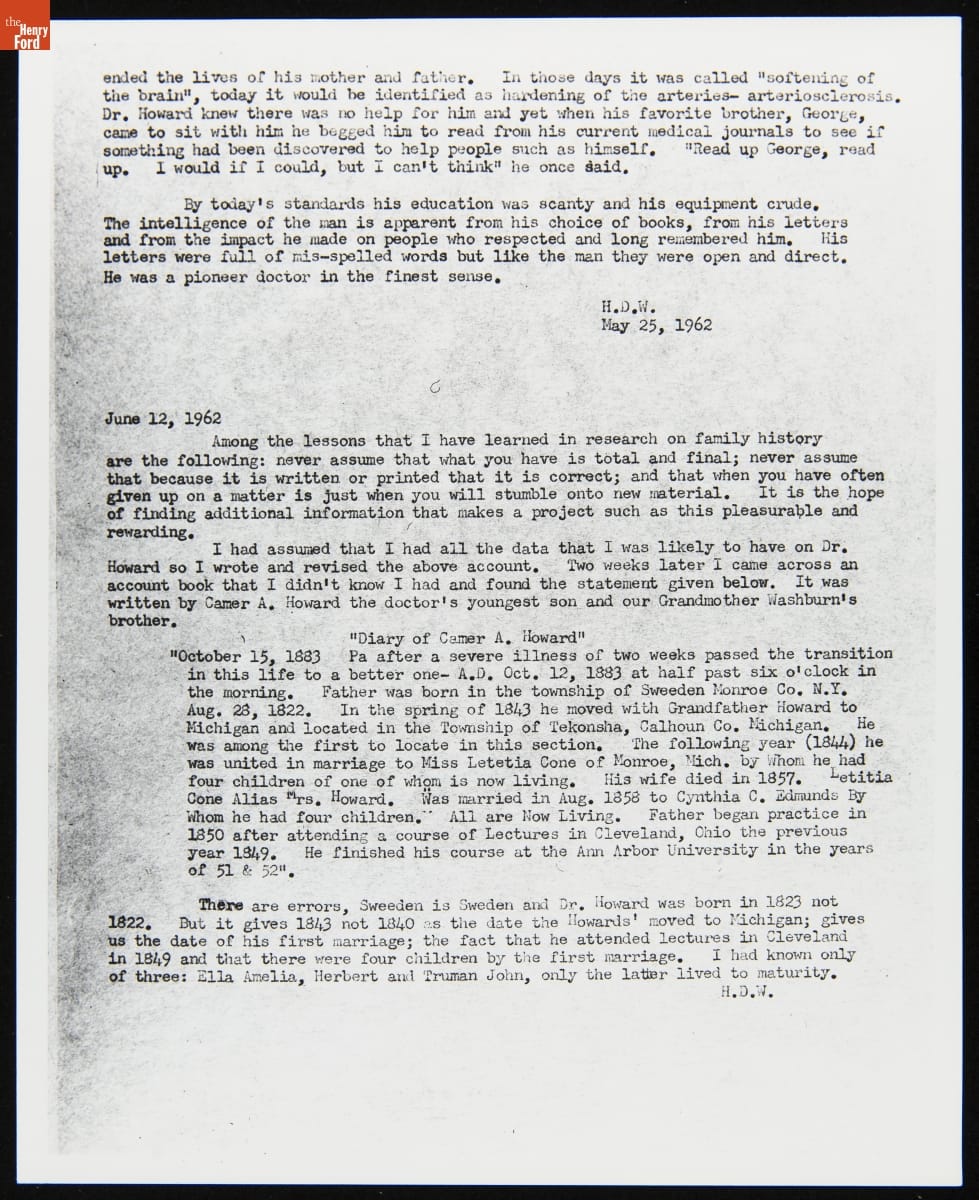 Biography of Dr. Alonson B. Howard, May 25, 1962