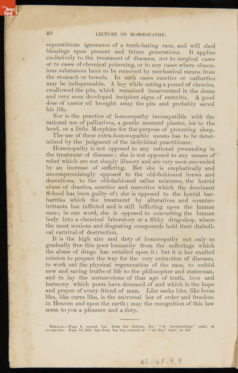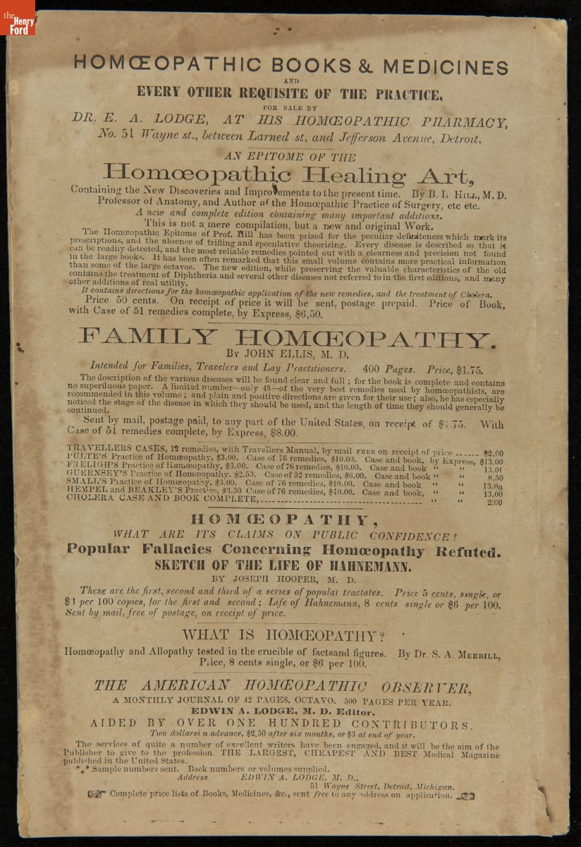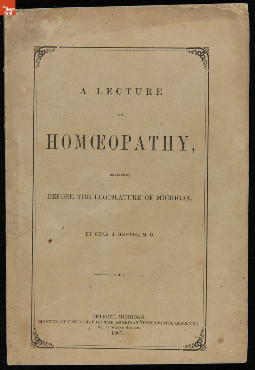 Booklet, "A Lecture on Homeopathy Delivered before the Legislature of Michigan," 1867