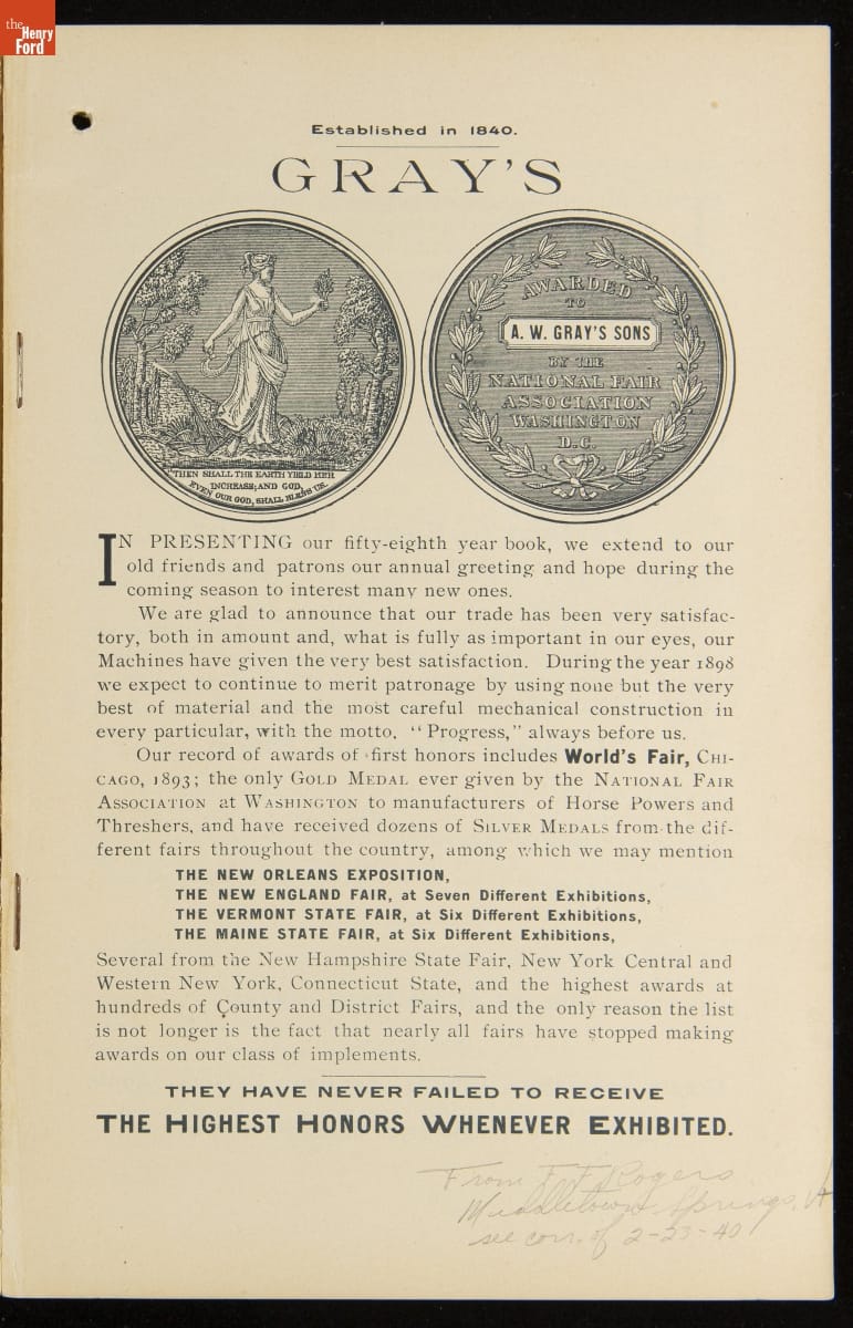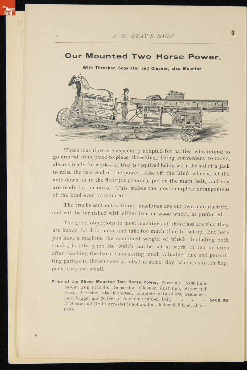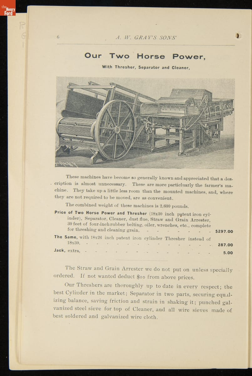 Catalogue of Gray's Horse Power Machines for Grain Threshing and Wood Sawing, 1898