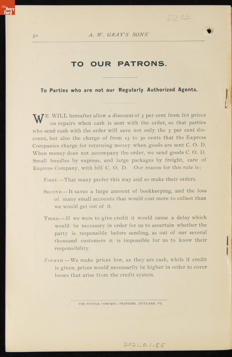 As farmers mechanized barn and farmyard work in the nineteenth century, they began to use stationary power sources. These included devices such as treadmills that converted the movement of animals to drive a variety of agricultural machines. Enterprising manufacturers, like Vermont-based A.W. Gray's Sons, specialized in producing and selling these devices and the machines they were designed to power.