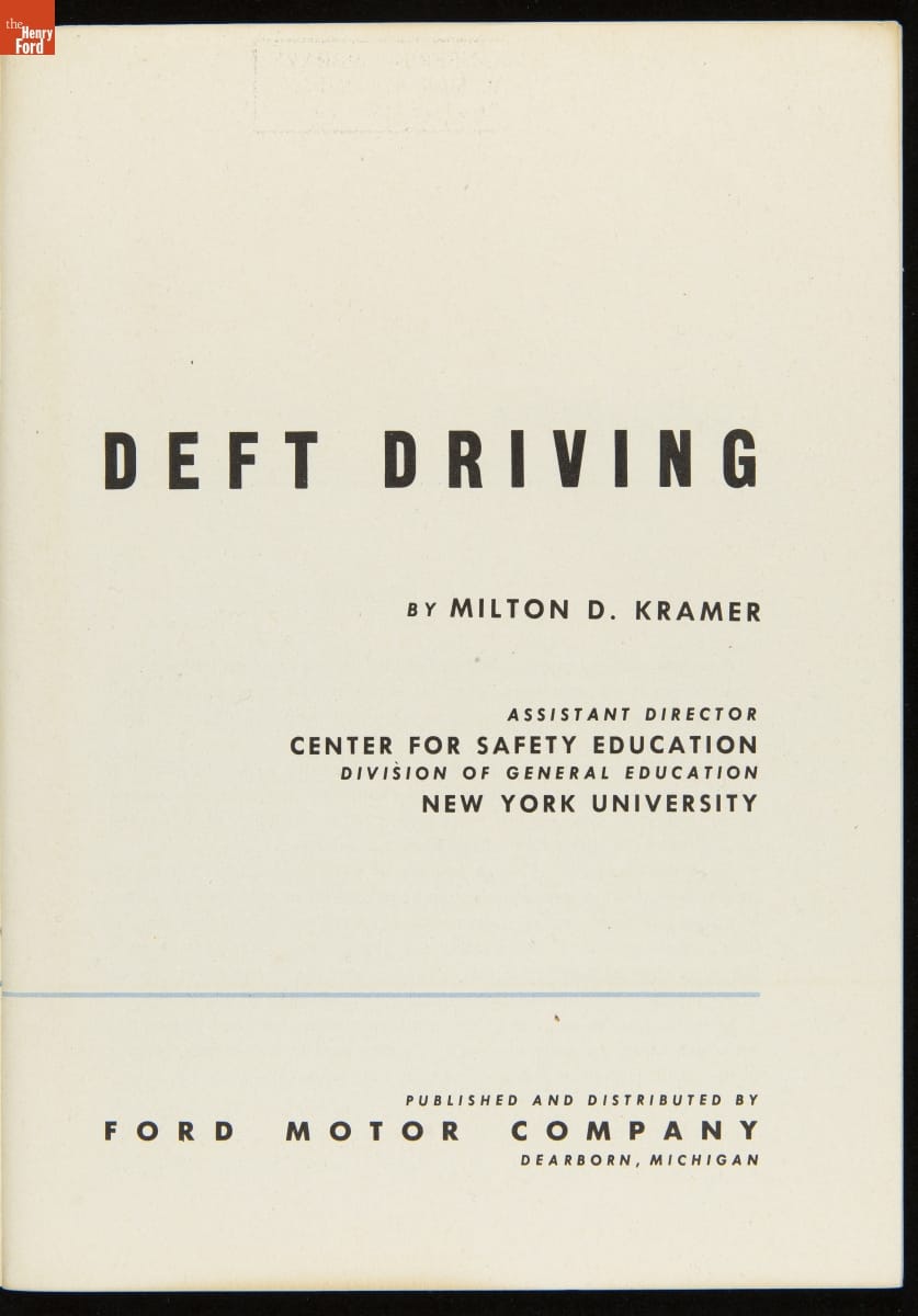 Ford Motor Company published a series of booklets in the 1950s under the title Deft Driving. These handbooks were geared toward young student drivers, and they included advice for safer and more efficient operation of motor vehicles. Students could test their knowledge by answering multiple-choice questions inside each booklet.
