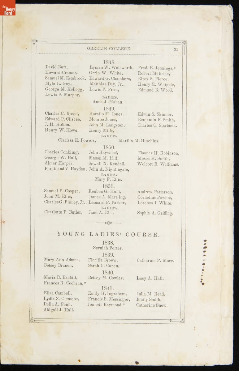 THF627616 / Oberlin College Graduates, 1836-1851 / front cover