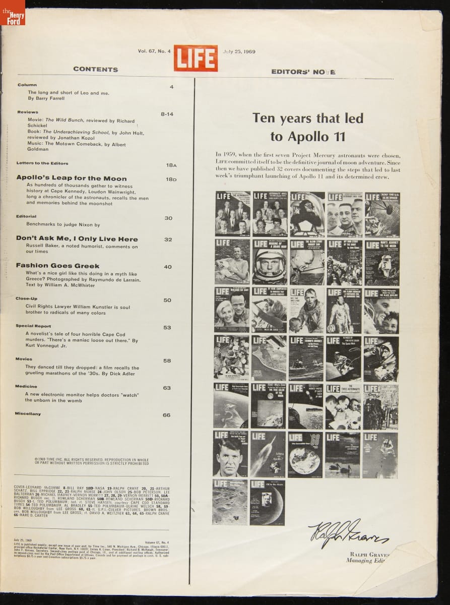 In July 1969, the ambitious plan to land a person on the Moon--laid out by President John F. Kennedy less than a decade earlier--neared reality. Americans eagerly anticipated the Apollo 11 mission, during which astronauts would walk on the Moon. Life magazine produced several issues before and after the event to keep the public informed on this historic undertaking.