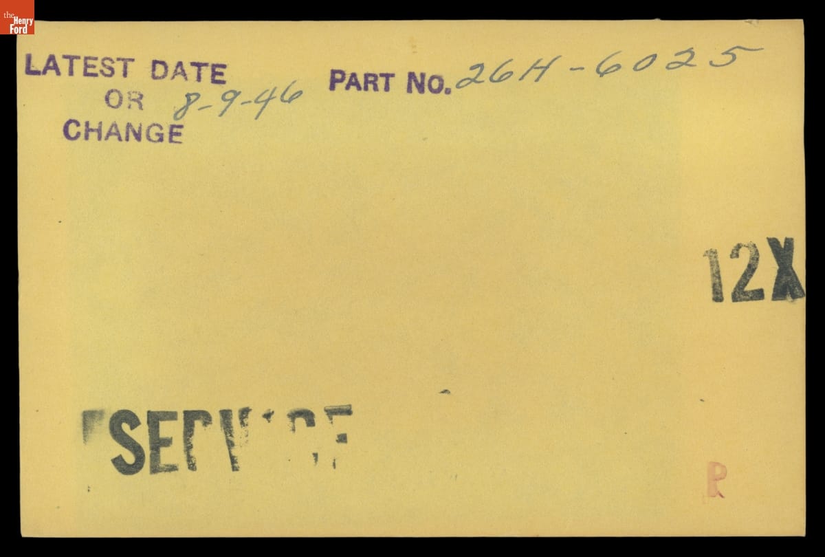The Ford Motor Company created over a million parts drawings from 1903 to 1957. Many of these drawings specify engineering requirements for the components of Ford-made vehicles--including automobiles, trucks, tractors, military vehicles and Tri-motor airplanes. Others document assembly components, stages of casting and forging, or experimental designs. Beginning in the 1940s, Ford transferred the drawings to microfilm.