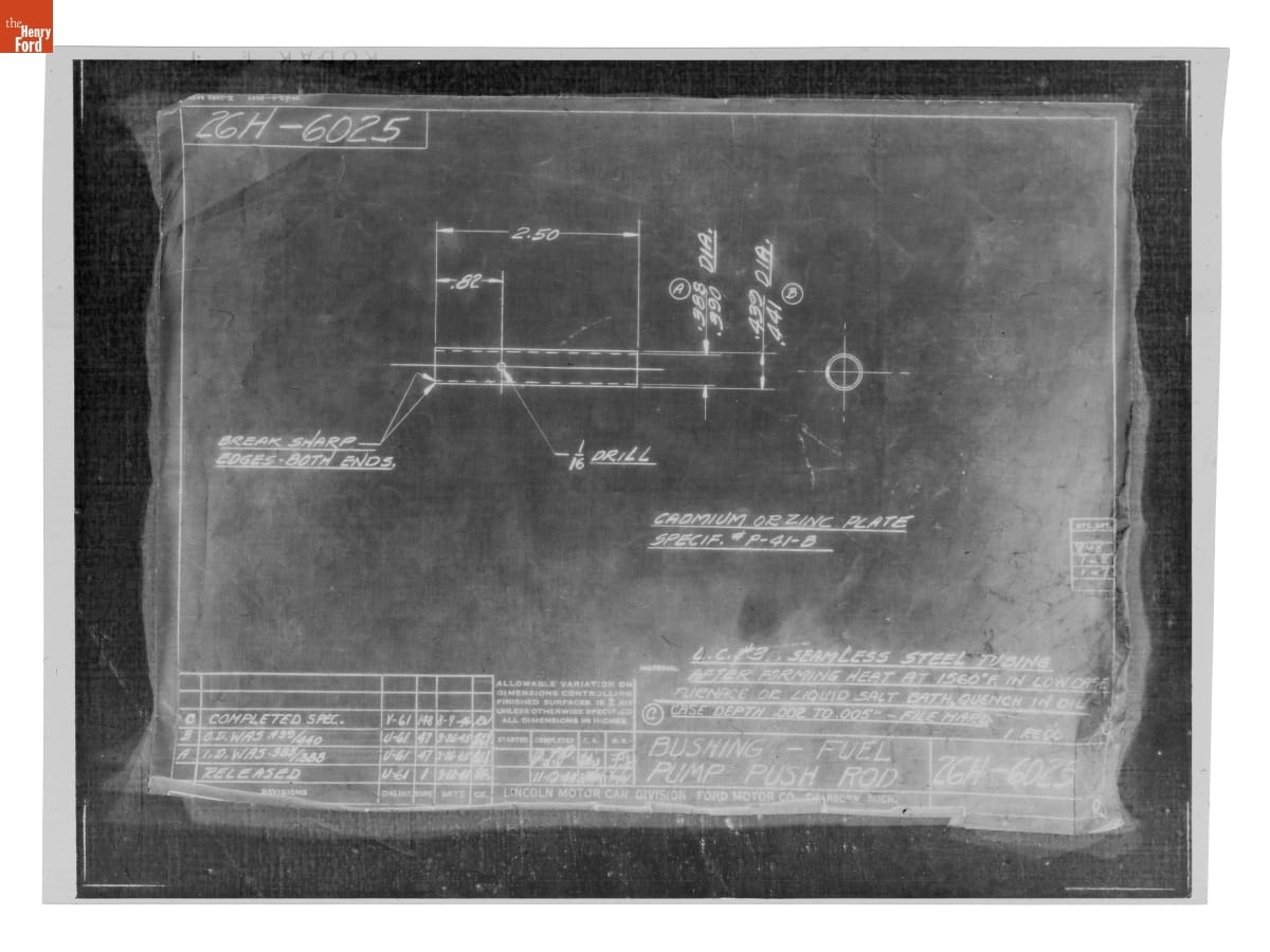 Drawing, "Bushing - Fuel Pump Push Rod," Lincoln Automobile, August 9, 1946