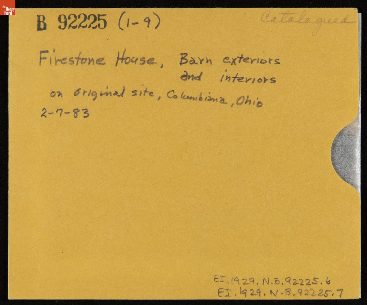 In 1983, Greenfield Village acquired the Firestone family's 19th-century farmhouse and barn in eastern Ohio. After careful documentation and disassembly, workers shipped the structures' original components to Dearborn, Michigan. There, craftsmen recreated architectural elements of the barn that had been replaced or drastically altered over the years, made repairs, and reconstructed the building in time for its dedication on June 29, 1985.