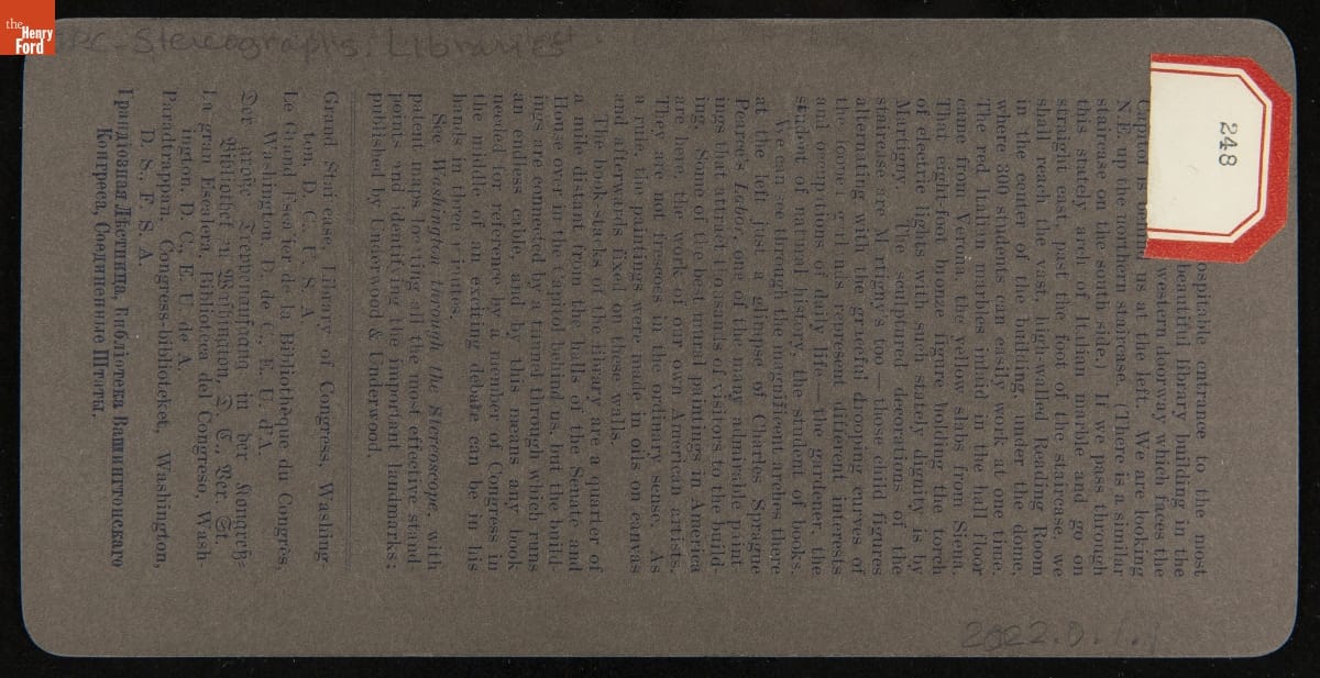 Stereograph, "Grand Staircase, Library of Congress, Washington, D.C., U.S.A.," 1899